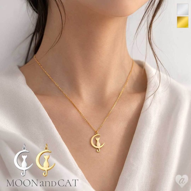 【普通郵便発送】 ネックレス 三日月と猫 ゴールドorシルバー 月に座る猫 かわいい 月 猫 cat 猫アクセサリー プレゼント ギフト 人気 おすすめ レディース 女子 猫好き 誕生日プレゼント クリスマス 母の日 バレンタイン ホワイトデー 記念日 おしゃれ シンプル 可愛い