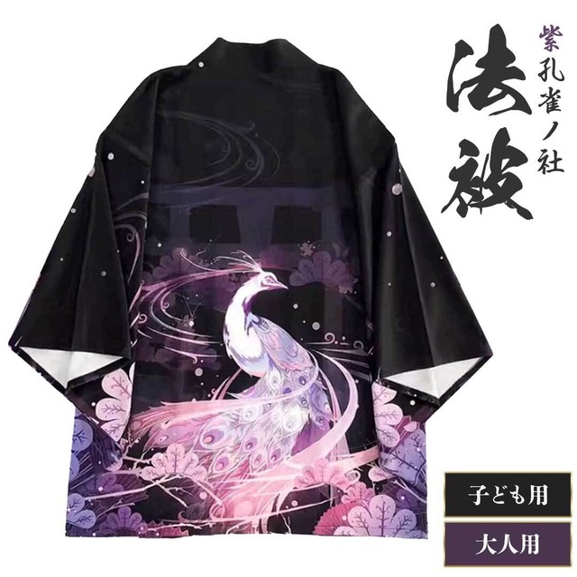 法被 紫孔雀ノ社法被 孔雀 鳥居 大人用 子供用 羽織 祭り 衣装 レディース キッズ イベント ユニフォーム お祭り 盆踊り はっぴ 半被 和柄 和装 モダン コスプレ 学園祭 文化祭 チーム衣装 演舞 ダンスイベント ステージ衣装 ダンス衣装 応援団 飲食店 イベント衣装 町内会