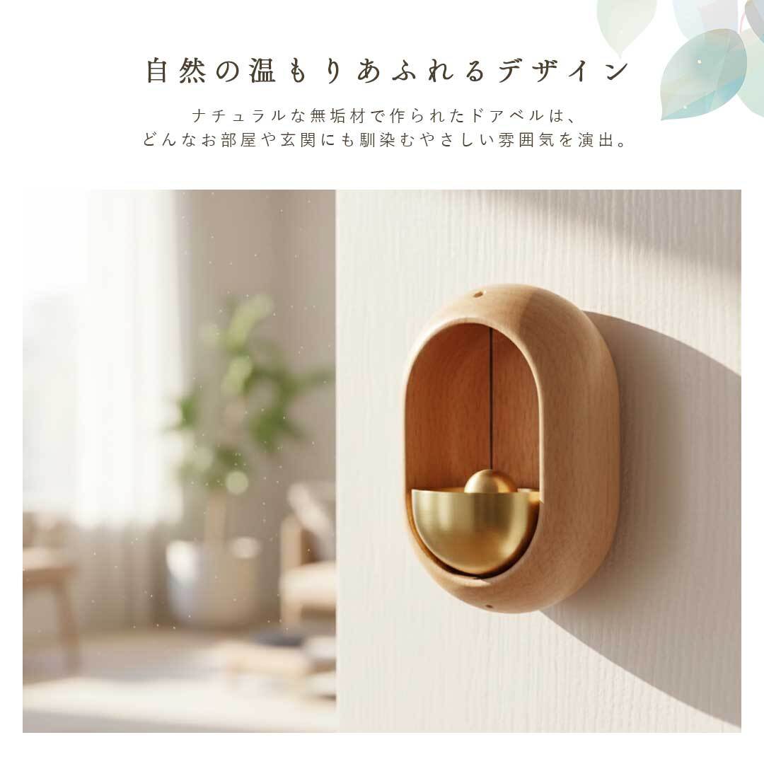 高級感のあるウッド素材とレトロな真鍮ベルのシンプルなデザインで、どんなお部屋やドアにも合うドアベルです