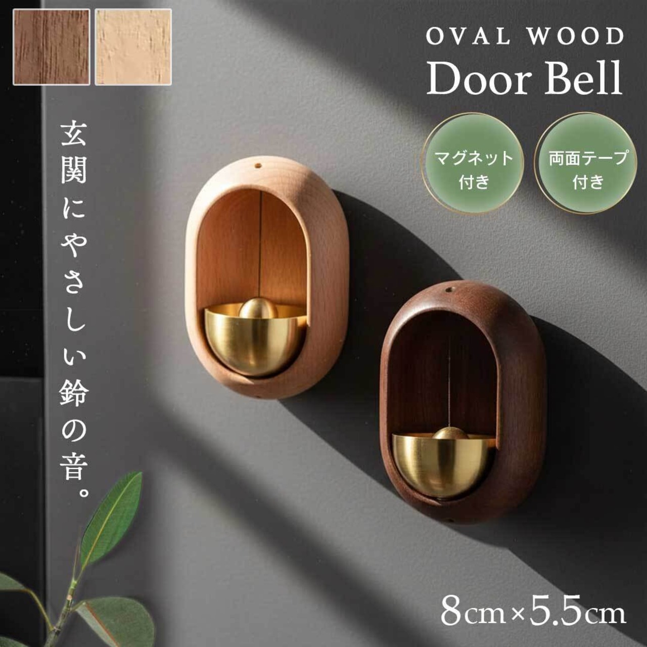 【置き配配送】ドアベル 木製 ドアチャイム ーVer3ー 丸 ブラウンorベージュ 8×5.5 マグネット式 丸型 玄関チャイム 呼び鈴 ウッド調 マグネット 無垢材 真鍮ベル 鐘 鈴 装飾 壁飾り ドア飾り シンプル ナチュラル おしゃれ かわいい チャイム エントランスウィンド 玄関 ドア 冷蔵庫 戸棚 収納棚 | AiO ONLINE STORE