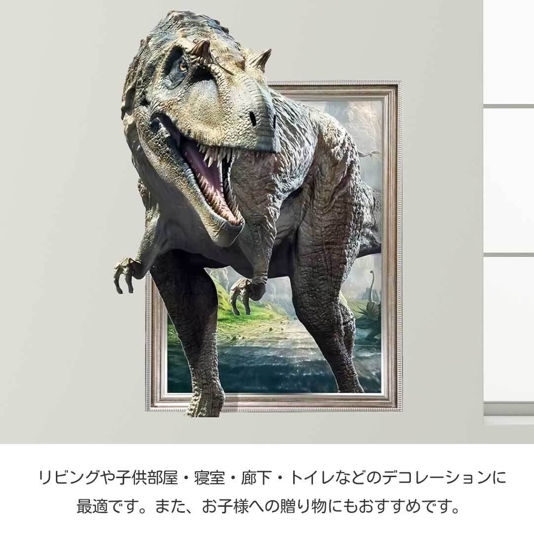 ウォールステッカー 3D ティラノサウルス ステッカー 48×74 北欧 恐竜 ダイナソー 壁 ウォール バスルーム トイレ 壁紙 シール リメイクシート インテリアシート ウィンドウステッカー ガラス 窓保護 フィルム 白亜紀 ジュラ紀 密林 おしゃれ カフェ モダン かっこいい 風景 はがせる リビング 子供部屋 洗面所 台所 玄関 かわいい 簡単 凛々しい 強い 店舗 会社 飾り付け SNS 映え グッズ 小物 イベント 動画撮影 バースデー お飾り 記念日 保育園 幼稚園 キッズルーム 病院 装飾 店内装飾 デコ デコレーション パーティー オシャレ