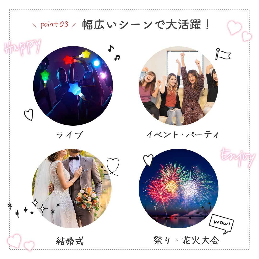 パーティー 記念日 誕生日 結婚式 二次会 宴会 余興 Youtuber カラオケでのイベント用品としてや、チーム応援 ナイトゲーム ナイト試合 発表会 演奏会など様々なシーンで使えます