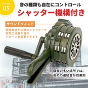 ※ハンドルを回しながら本体を持っている方の人差し指でトリガーを引くと音量が上がります(調節可能)