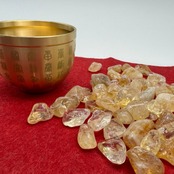 黄金に輝くシトリンのさざれ石と、手のひらサイズの真鍮ボウルがひとつになった、風水開運セット。場所を選ばず使えるコンパクトさで、お部屋やオフィスの「気」を整えてくれる、金運・財運を高めたい方におすすめのアイテムです。