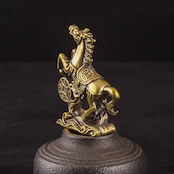 高級感あるブロンズゴールドの輝きと重厚な質感が特徴。高さ約5cmのコンパクトサイズで、玄関・デスク・窓際・金庫の上などに飾りやすく、風水インテリアやプレゼントにも最適です。午年の方への贈り物や開業祝い、宝くじ祈願などにもおすすめ。
