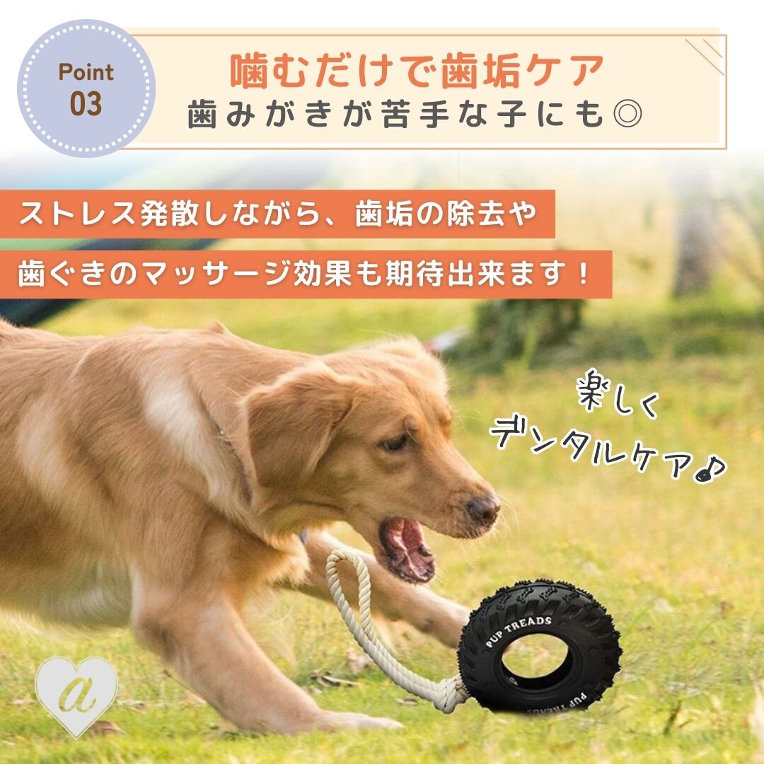 本能を刺激するユニークな形状と、高耐久のゴム素材。遊びながらデンタルケアもできる、機能性と楽しさを兼ね備えたタイヤ型ペット用おもちゃです。