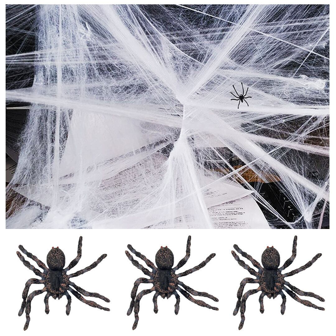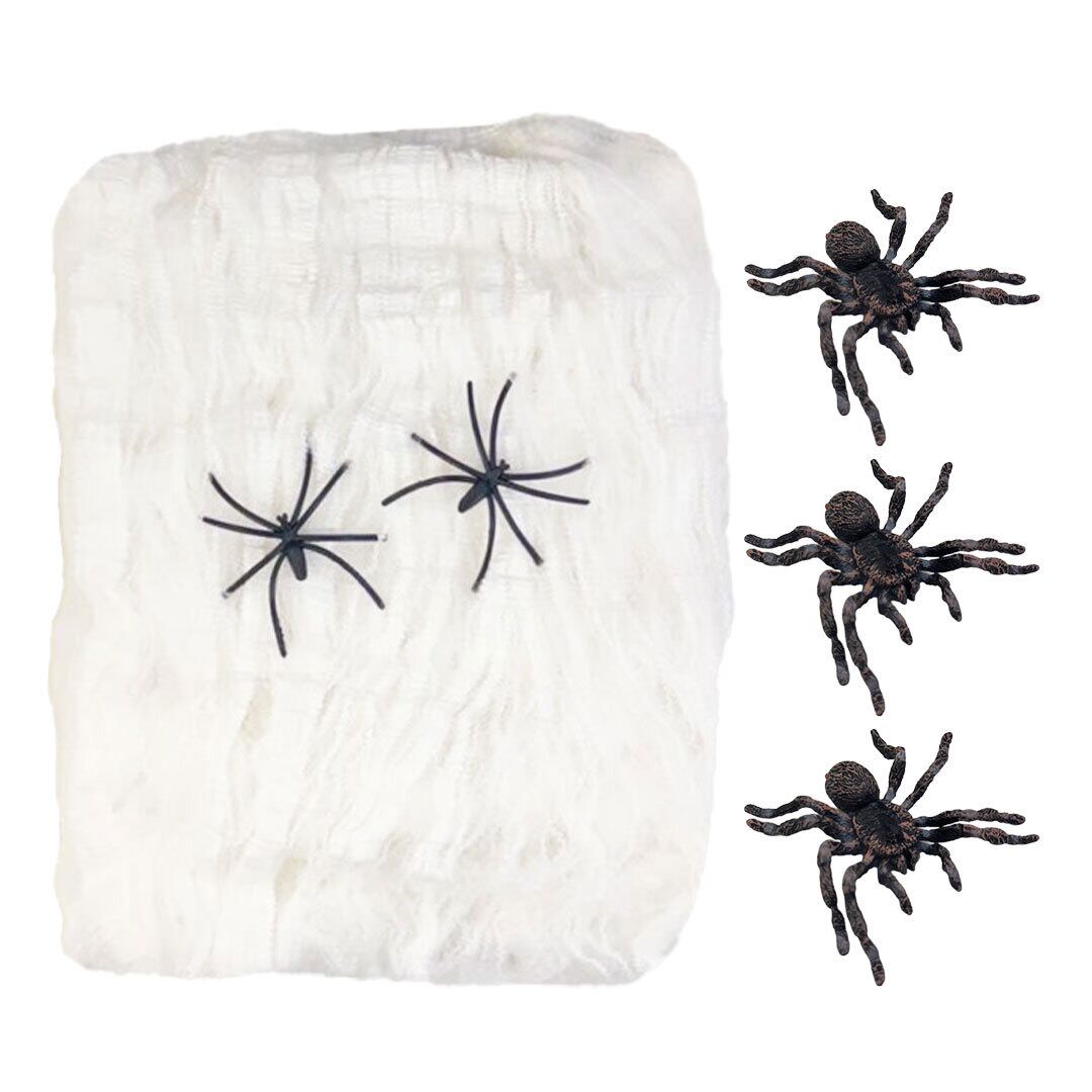 ハロウィン 装飾 スパイダー セット ミニ蜘蛛3個+くもの巣ホワイト1個 リアルスパイダー スパイダーウェブ 雑貨 ホラー リアル 本格的 飾り付け 室内 仮装 怖い 恐怖 豪華グッズ おしゃれ パーティー DIY デコレーション アメリカ 北欧 バースデー