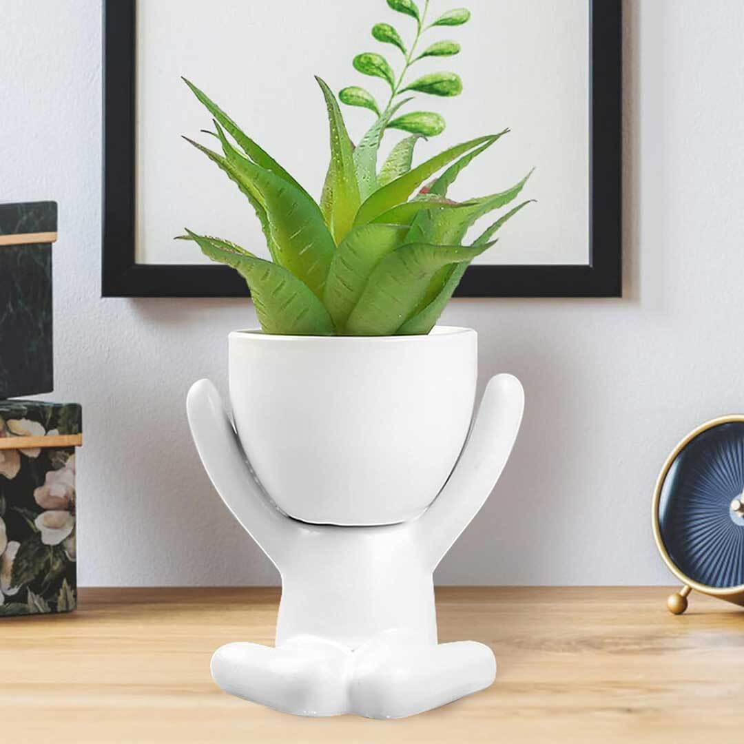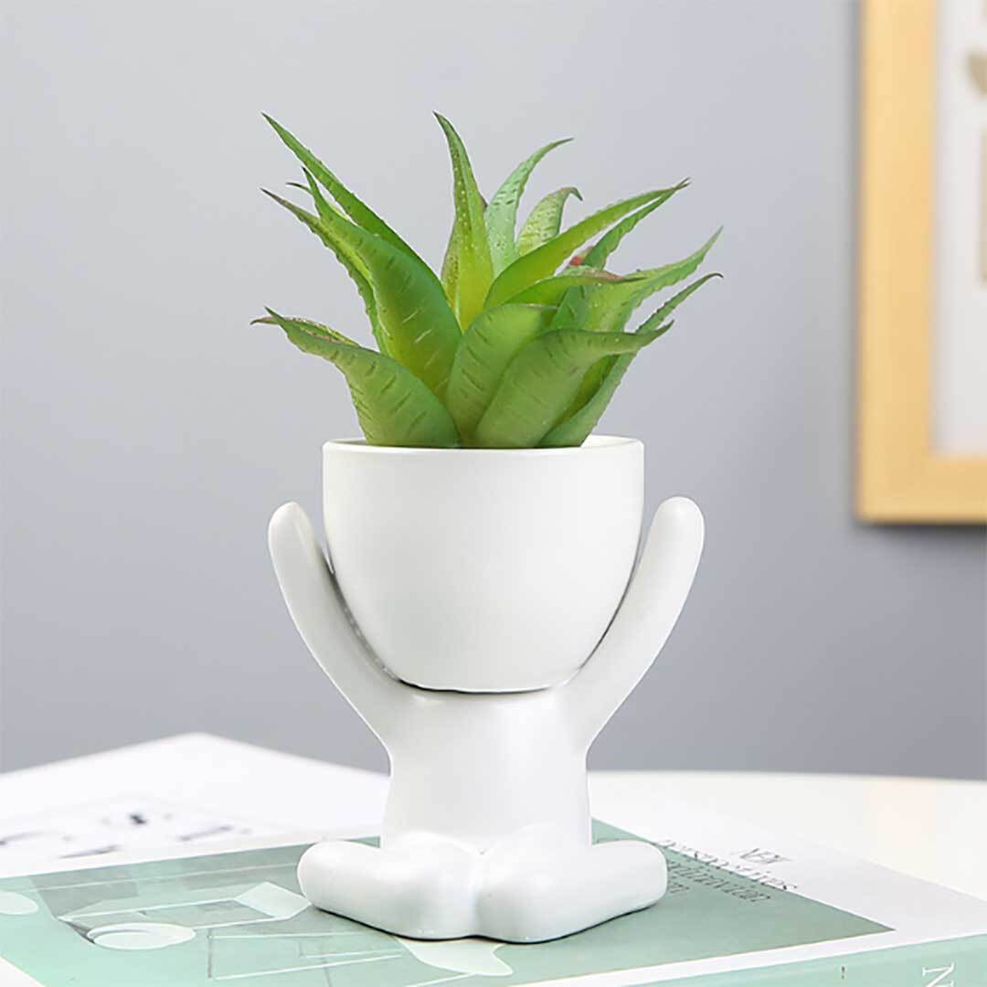 ミニ植木鉢 小人型 ホワイト 3体セット 陶器 セラミック ガーデニング 植木鉢 多肉植物 サボテン 園芸 プランター 置物 インテリア おしゃれ かわいい 個性的 ガーデン オブジェ 庭 ベランダ 屋外 室内 装飾 オーナメント 植物用ポット ミニポット 植物 花 観葉植物