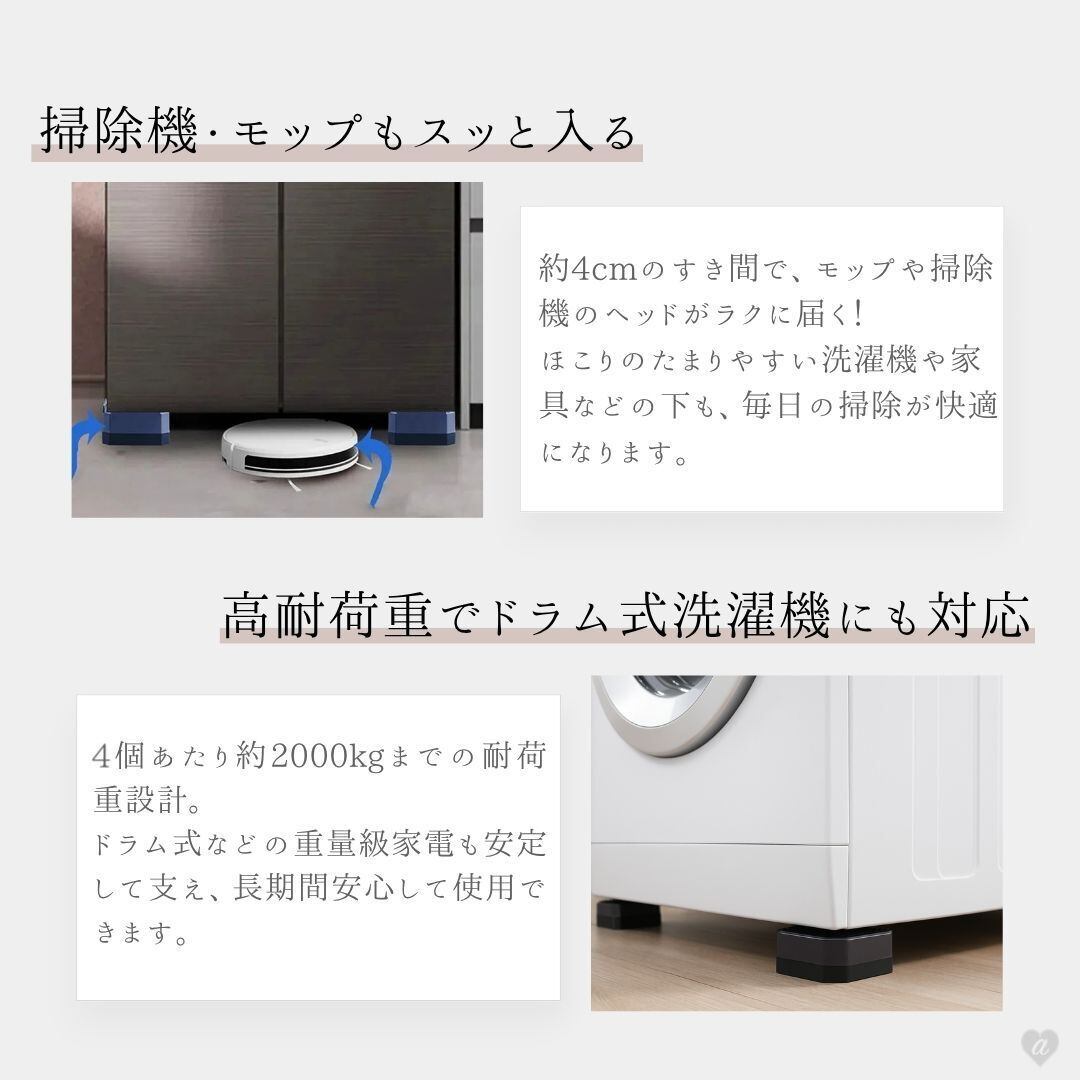 洗濯機用 防振かさ上げ台 2段 4個セット 洗濯機 全4カラー 洗濯機台 振動防止 洗濯機足上げ 高さ調整 通気 掃除しやすい 脚台 底上げ 防振ゴム 防音対策 かさ上げゴム 防振台 家電振動対策 騒音対策 高さ調整台 ゴム脚 振動吸収ゴム 静音グッズ 下掃除 乾燥機かさ上げ 家電かさ上げ 家具かさ上げ 洗濯機滑り止め 床保護ゴム ゴム製台 滑り止め台 家電安定台 簡単設置ゴム 補助台 安定 省スペース 便利グッズ 滑らない洗濯機台 かんたん ガタつき防止 グラつき軽減