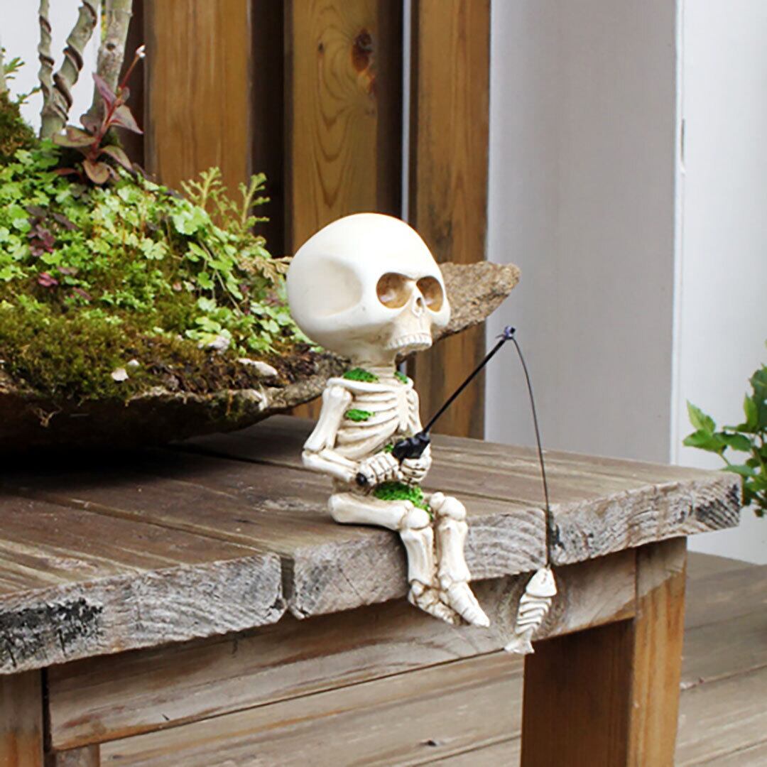 ミニチュア 釣りスケルトン 骸骨 置物 フィギュア 2体セット ハロウィン ホラー ユニーク アクアリウム 水槽 庭園 庭 池 リアル ガイコツ スカル 釣り 釣り人 手のひらサイズ ガーデンオーナメント オブジェ インテリア 雑貨 小物 装飾 ディスプレイ 装飾品 面白い かわいい ギフト 癒し ホラー雑貨 卓上オブジェ おしゃれ雑貨 おもしろ雑貨 インスタ映え 写真映え 撮影小物 ガーデニング ジオラマ 遊び心