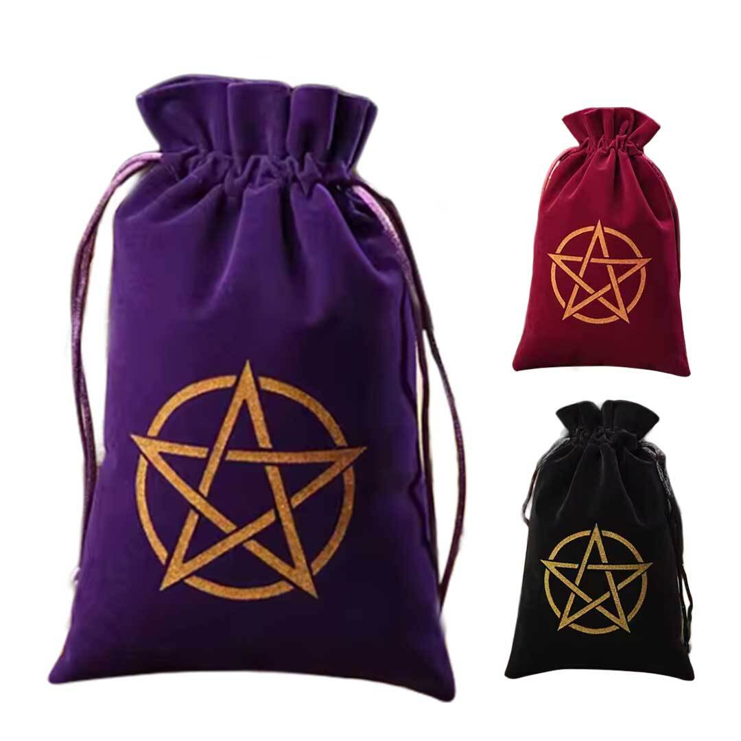 【普通郵便発送】 タロットカード用 巾着袋 ーVer2ー 五芒星 3カラー ポーチのみ 22×14cm ベルベット タロットポーチ オラクルカード収納 タロット収納袋 デッキ収納袋 布製 カードケース カード入れ 袋 巾着 スピリチュアル ヒーリング 魔女