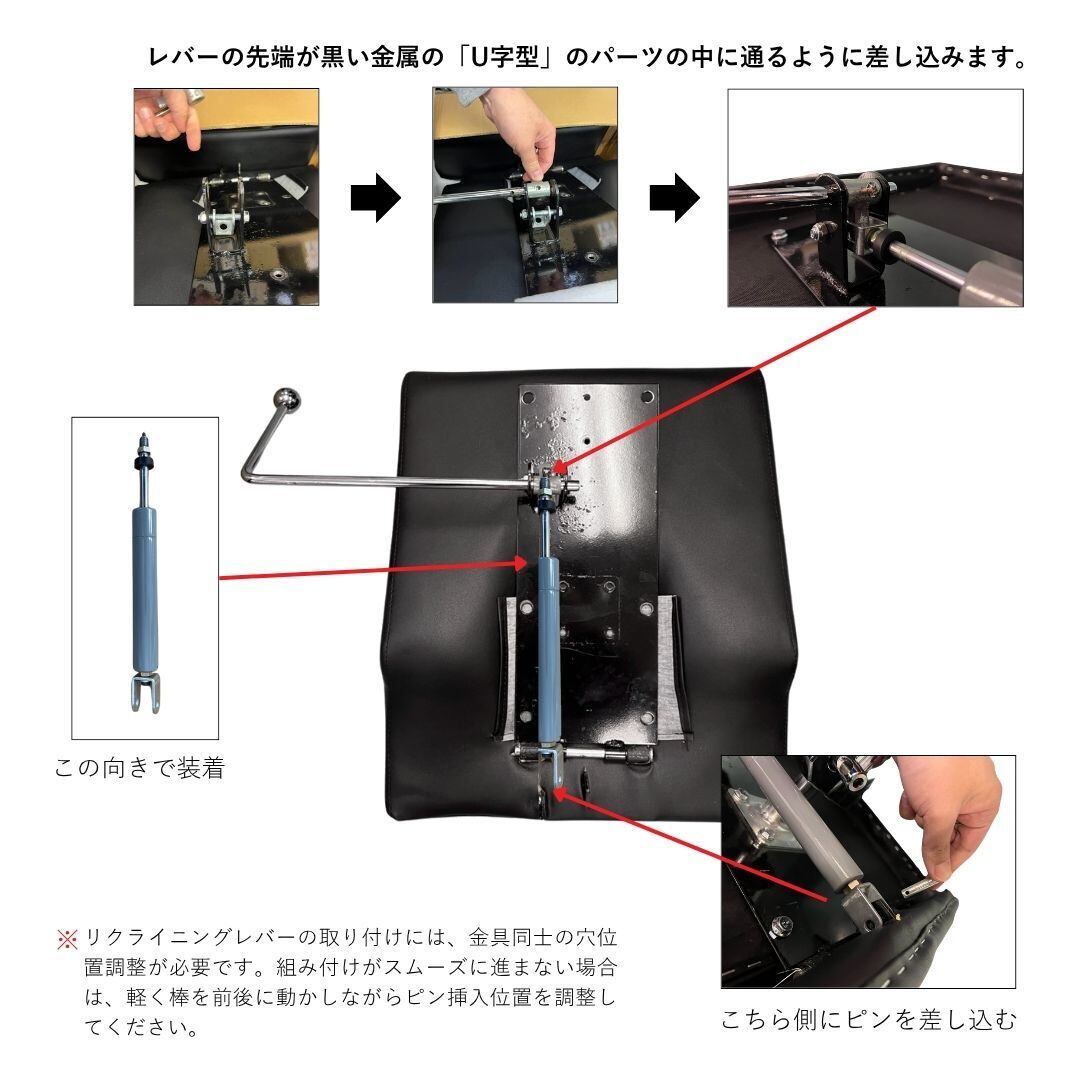 ・サイドレバーの棒をリクライニング金具に差し込み、穴を合わせてピンを差し込む(回転可能に)
