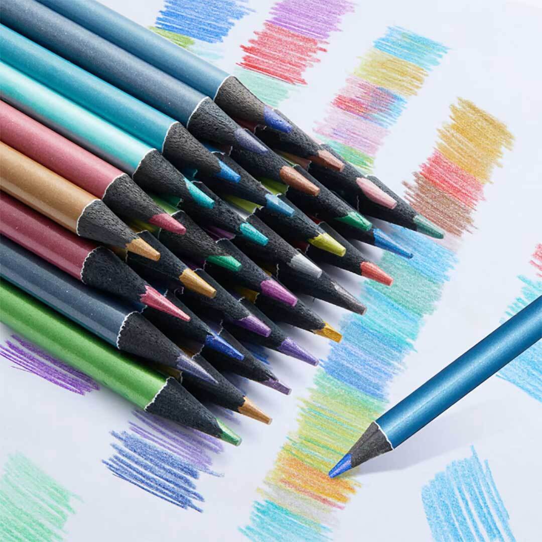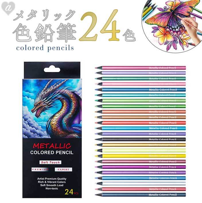 色鉛筆 メタリックカラー 24色 色鉛筆セット 文房具 キラキラ メタリック カラーペンシル DIY 画材 絵画 色えんぴつ 塗り絵 子供 大人 創造性 デザイン 設計 グラフ スケッチ イラスト 落書き アート クラフト ハンドメイド 手帳デコ 初心者 入園 入学 入園祝い 入学祝い 夏休み 自由研究 お絵描き グッズ 文具 プレゼント ギフト お絵かきセット キラキラ文具 おしゃれ文房具 趣味 大人の塗り絵
