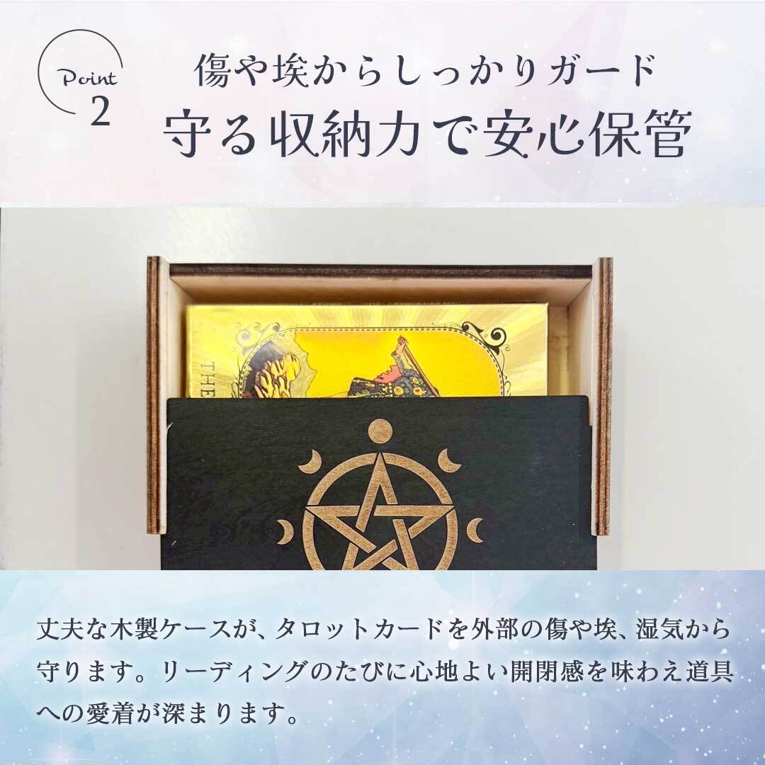 お気に入りのタロットカードを美しく、神秘的に保管できる木製カードケースです。