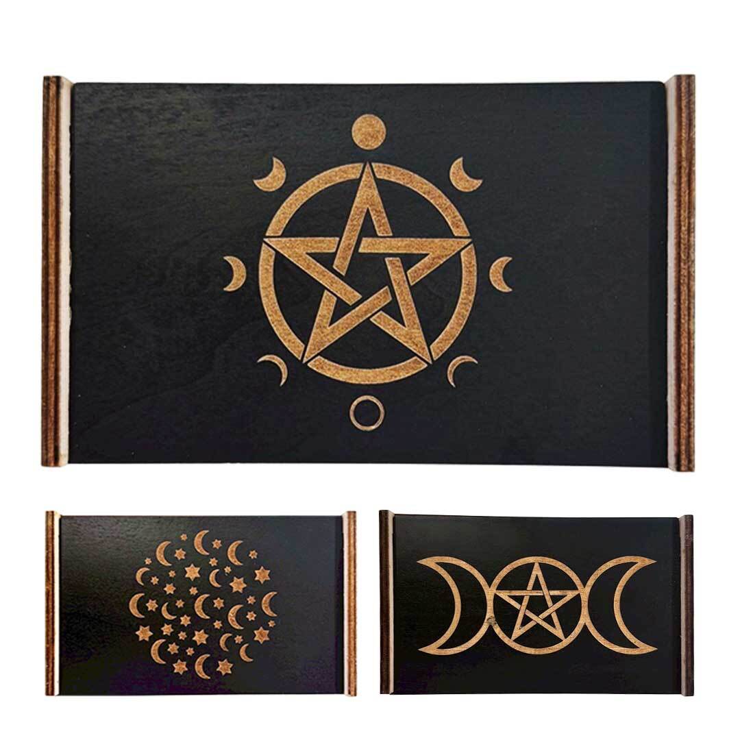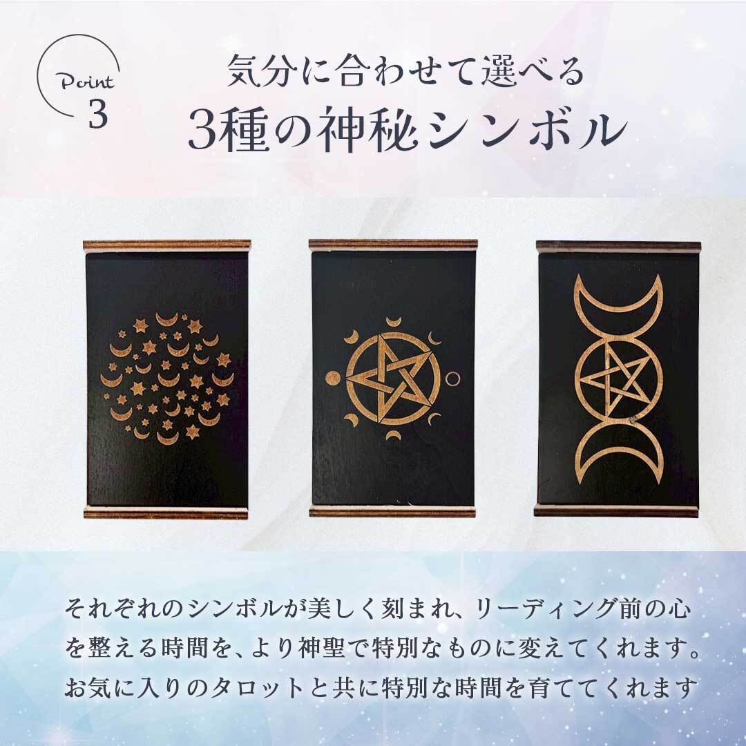 深みのあるブラックカラーに、五芒星・月・星のスピリチュアルなシンボルを丁寧に刻印。神秘的な雰囲気を高めながら、占いやヒーリングの空間にもよく馴染みます。