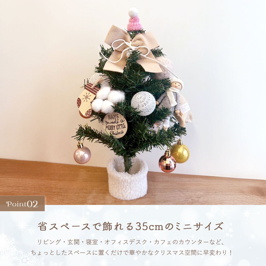 ナチュラルで温かみのあるデザインが魅力の、卓上サイズのクリスマスツリーです。