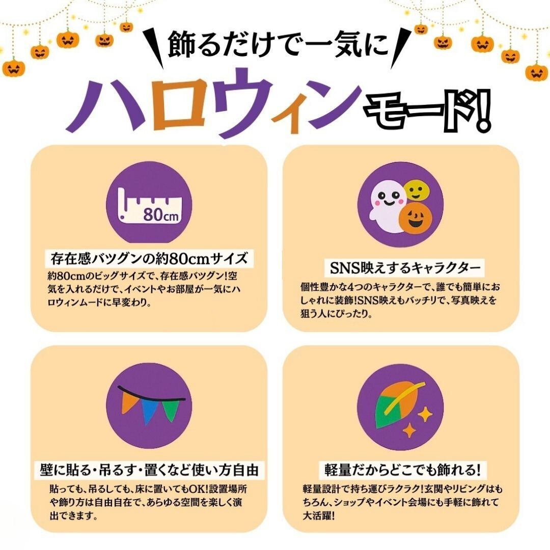 インパクト抜群のサイズとポップなデザインで、玄関やお部屋、パーティースペースを一気にハロウィンムードに。お子さまとのイベントや写真撮影にもぴったりです。