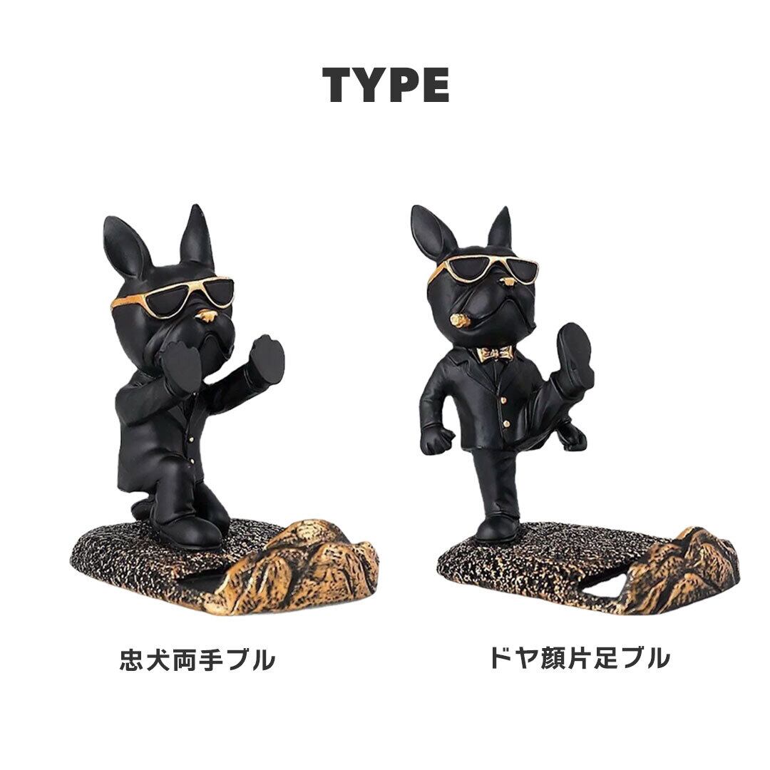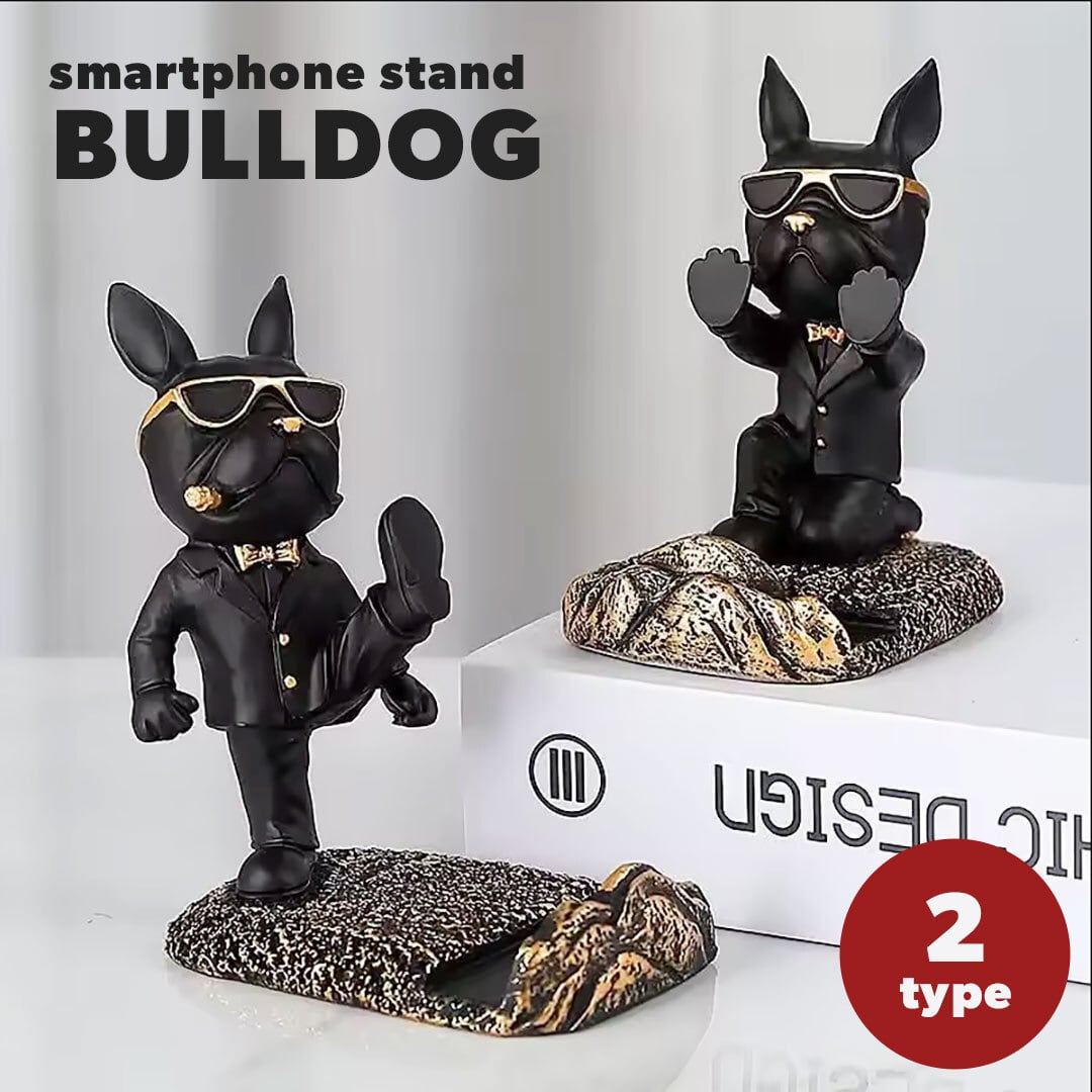 スマホスタンド ブルドッグ スーツ犬 2種 犬 卓上 固定 置くだけ おもしろ ユニーク 置物 インテリア オブジェ かわいい お洒落 おしゃれ かっこいい 雑貨 実用的 スマートフォン タブレット ミニサイズ 携帯スタンド スマホ置き スマホホルダー 卓上スタンド