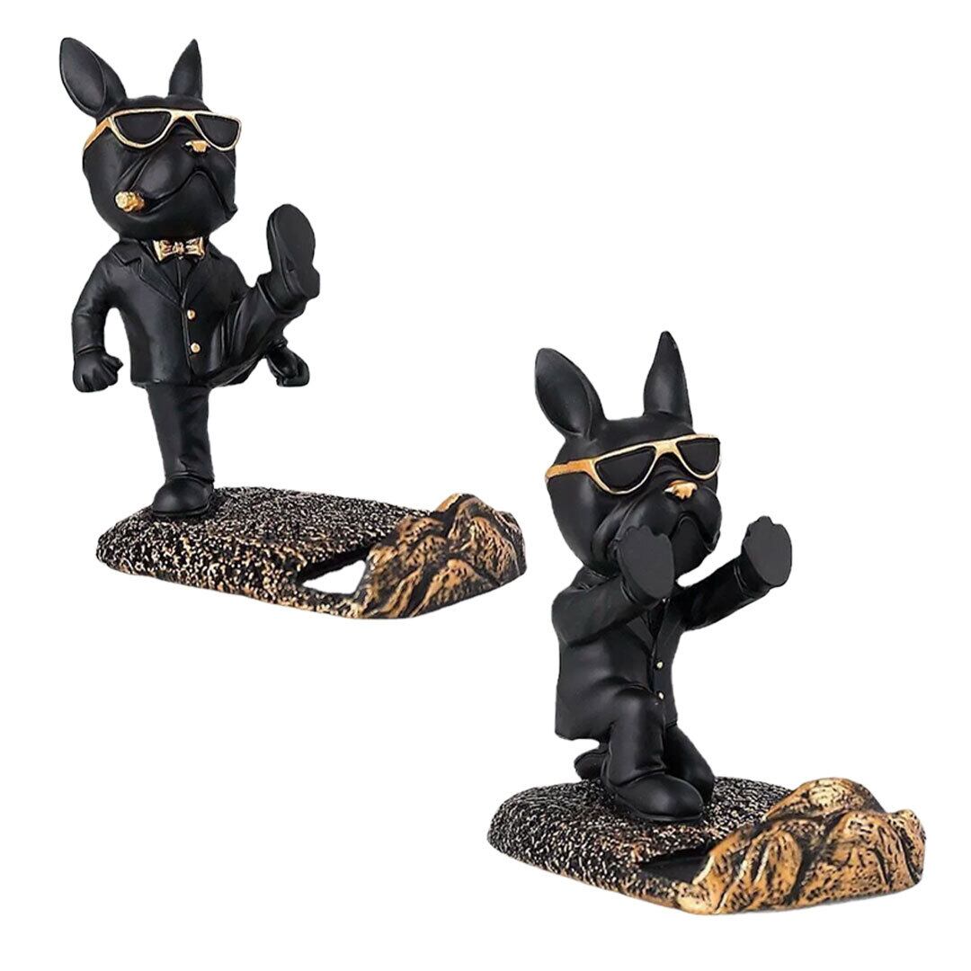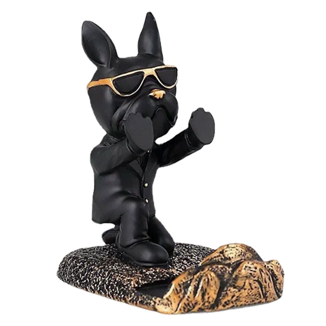 デスクやリビングに、遊び心と高級感をプラス。サングラスをかけたスーツ姿の“クールなブルドッグ”が、あなたのスマホをしっかりホールド!