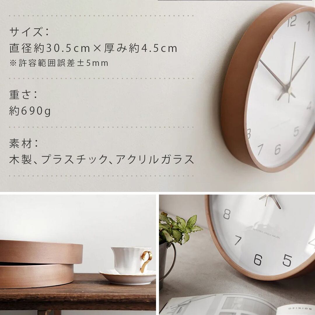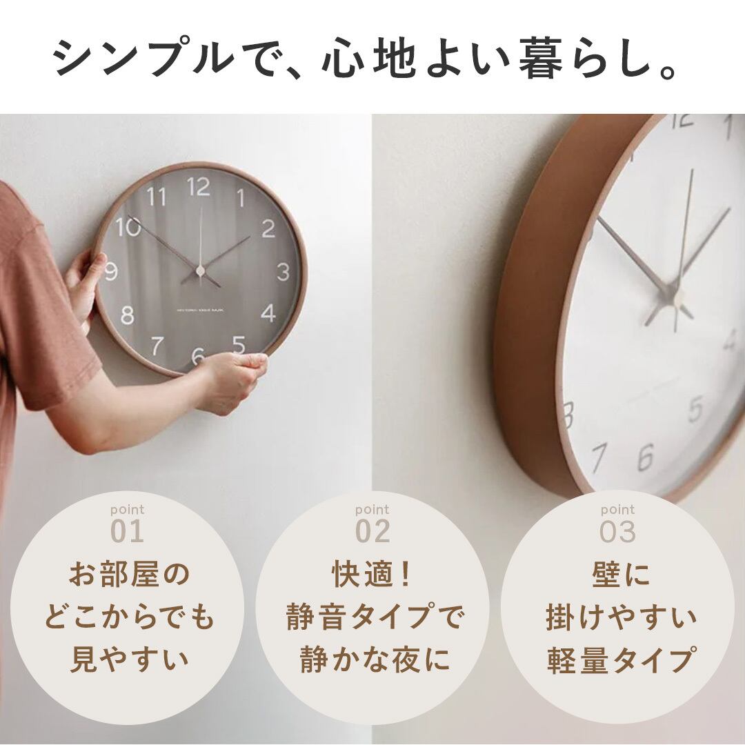 ナチュラルな質感と高い静音性を備えたこの時計は、ご自宅用はもちろん、引越し祝いや新築祝いなどのギフトにもぴったり。暮らしの中にやさしく寄り添い、毎日の時間を豊かに彩ります。