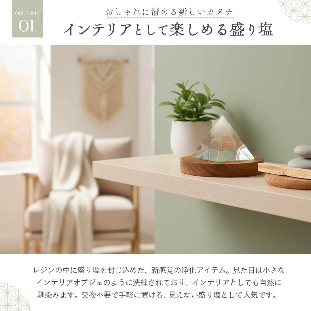盛り塩 レジン オルゴナイト ピラミッド 浄化 日本製 開運 風水 グッズ 交換不要 魔除け 厄除け 置物 インテリア 雑貨 お守り 商売繁盛 金運祈願 家庭運 恋愛運 癒し プレゼント ギフト ハンドメイド 清め 盛塩 浄化済み 職人の手作り メイドインジャパン MADE IN JAPAN オリジナル 縁起 運気 凶祓い 厄払い 邪気 商売繁盛 樹脂