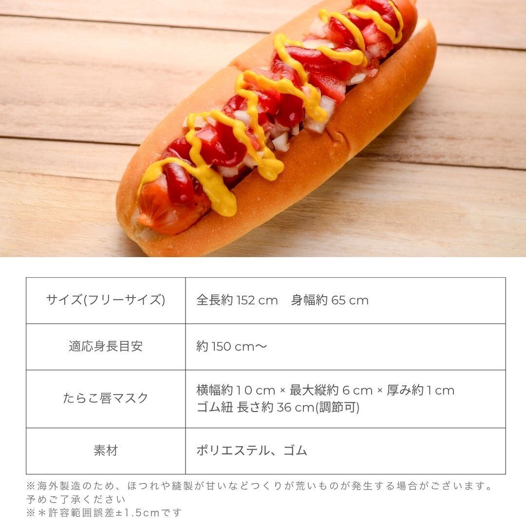 着ぐるみ ホットドッグ 【たらこ唇マスク付き】 大人用 コスプレ おもしろ グッズ アイテム 男女兼用 フリーサイズ ハロウィン クリスマス 文化祭 学園祭 忘年会 お祭り 仮装 カーニバル パフォーマンス サプライズ イベント用品 店頭 店先 街頭