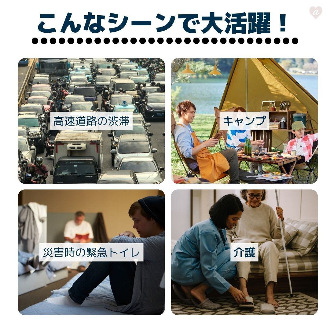 渋滞中やキャンプ、車中泊、登山、災害時など「今すぐトイレに行きたい!」という時に便利な使い捨てタイプの携帯トイレです。