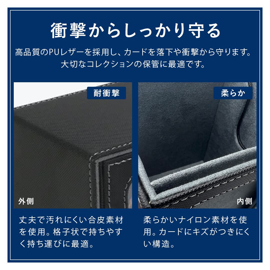 外装は高品質のPUレザーを採用。 カードを落下や衝撃から守ります。 大切なコレクションの保管に最適です