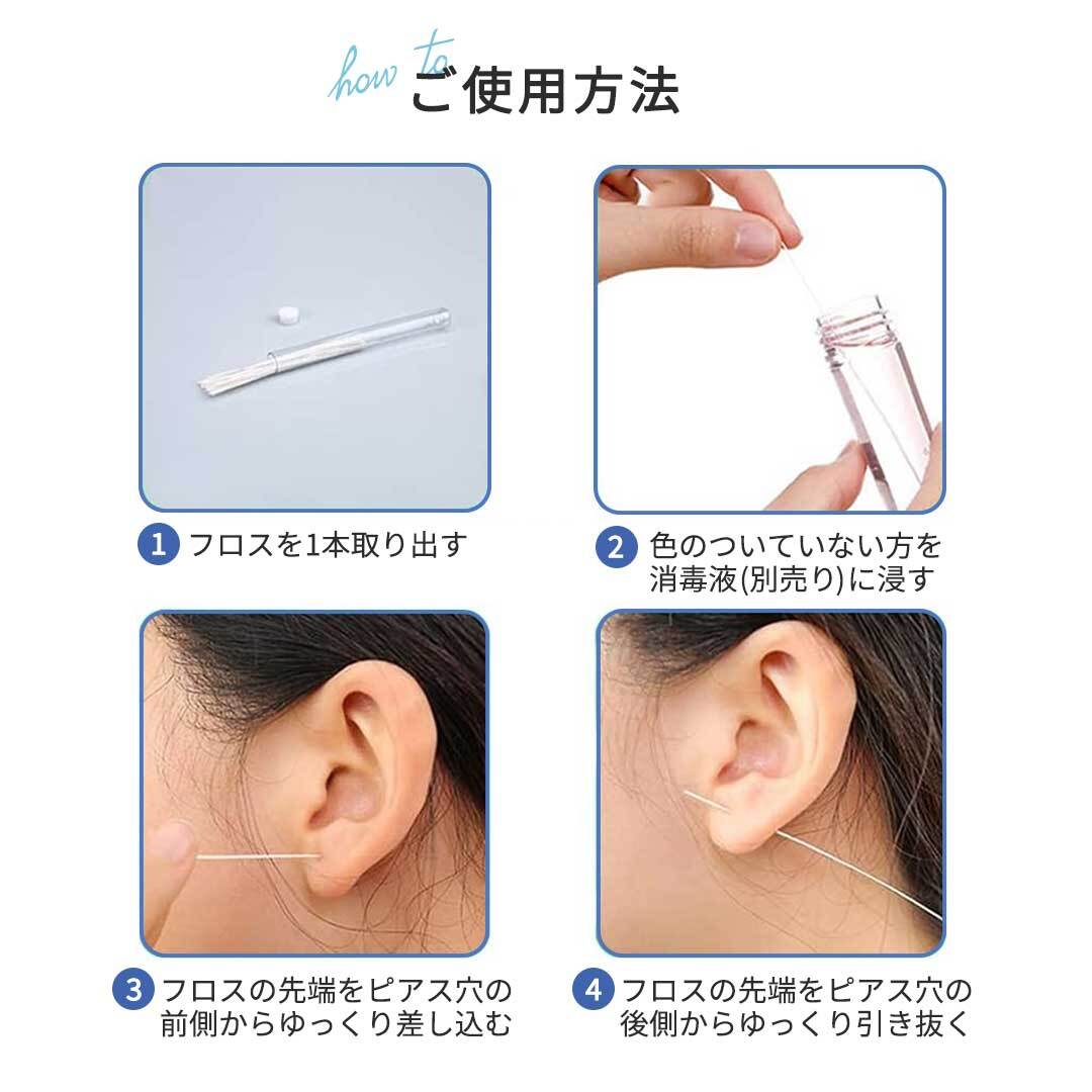【普通郵便発送】 使い捨て イヤーフロス 60本セット 全7色 ケース付き 詰め替え用 ピアス穴 クリーニング 掃除 ピアスホール イヤホール イヤーホールクリーナー ペーパーフロス クリーニングキット ケア フロス 清潔 衛生用品 極細 ピアス穴クリーナー かゆみ対策 予防