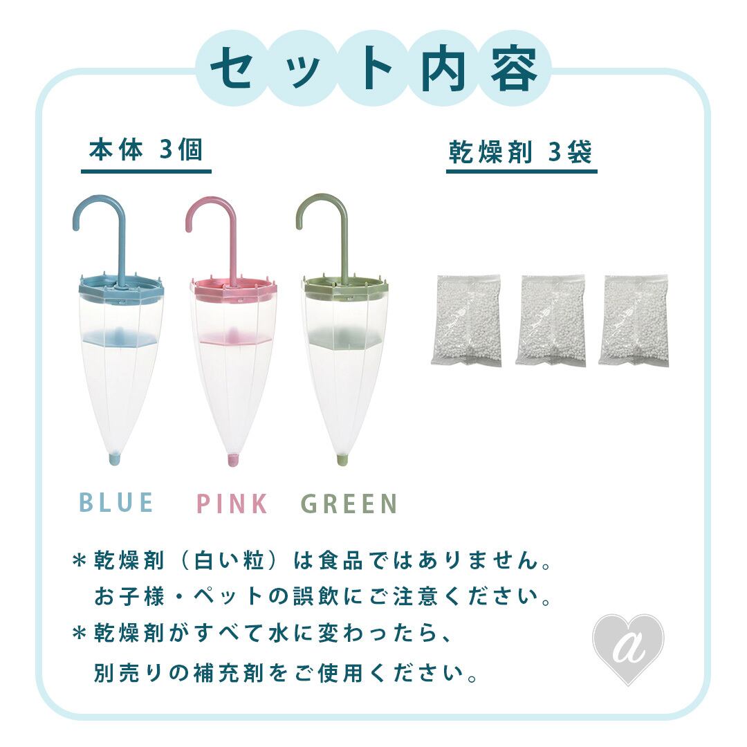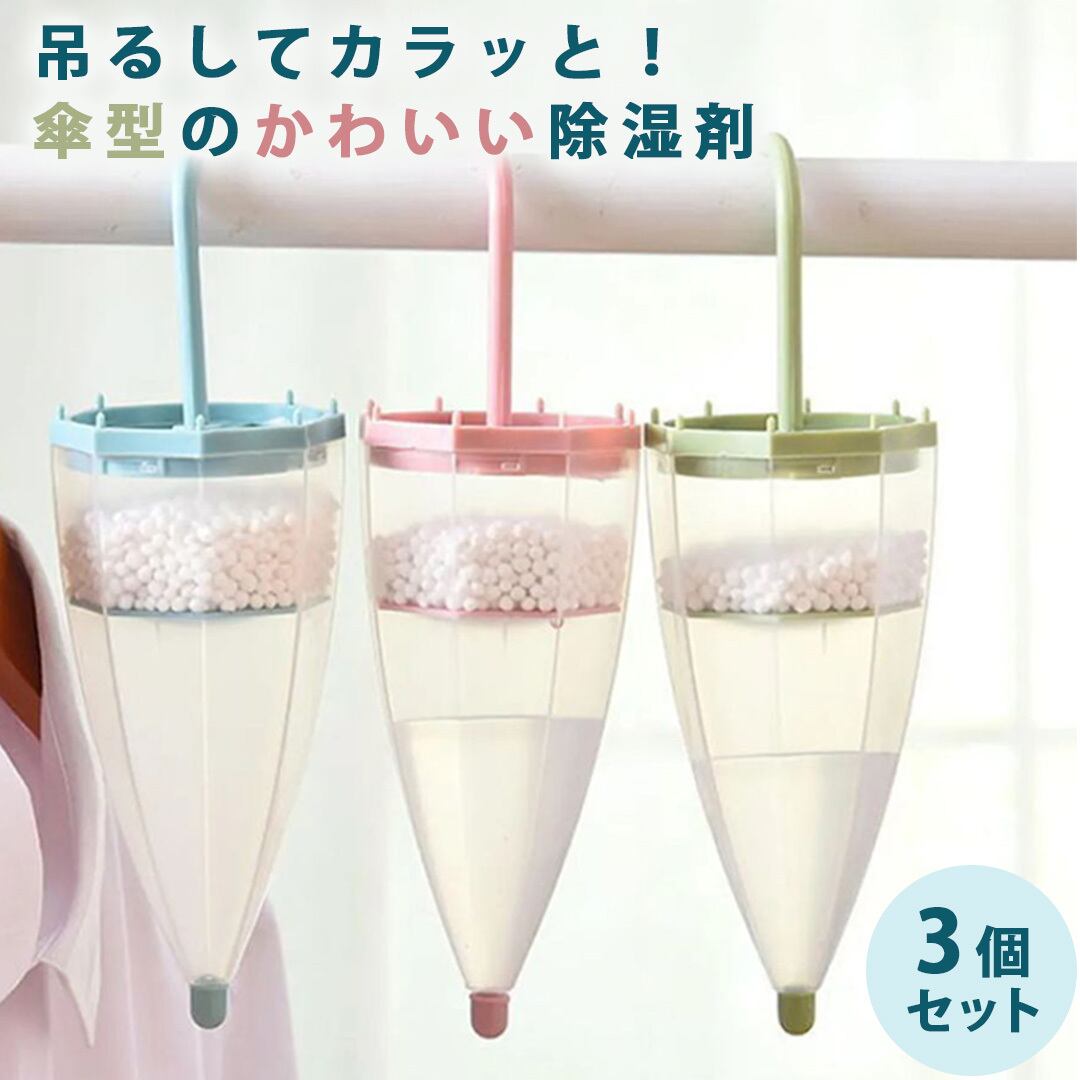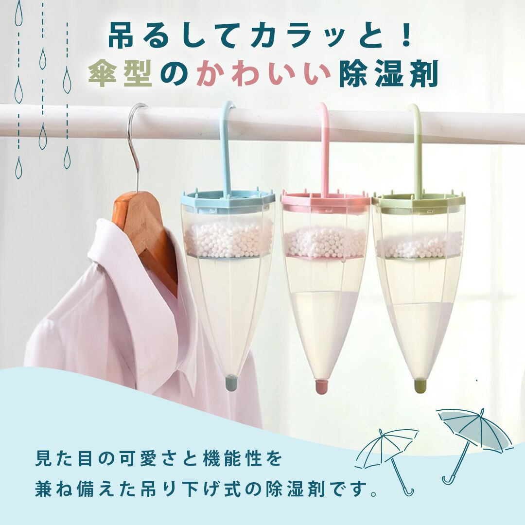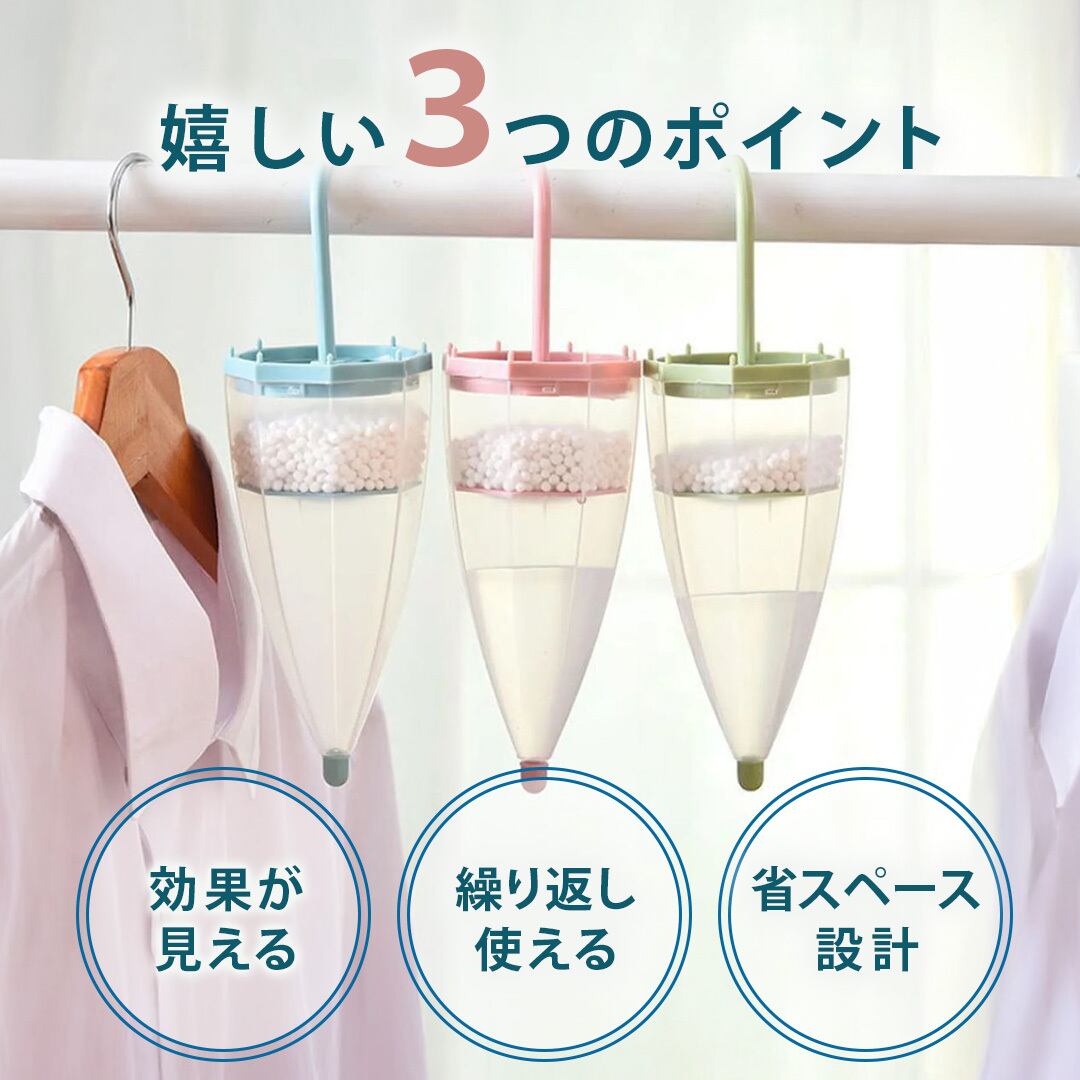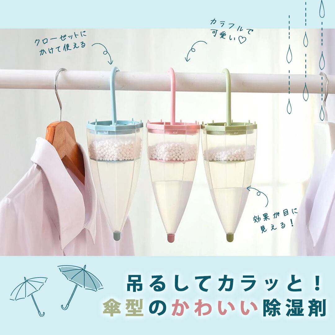 衣類用脱湿 アンブレラタイプ 傘 3個セット 乾燥剤300g付属 全3カラー 除湿 クローゼット 吊り下げ 除湿器 傘型 おしゃれ 衣類 除湿グッズ 湿気対策 再利用可能 除湿剤 乾燥剤 吸湿 水に変わる 湿気取り コンパクト 湿気除去 小型 省スペース ハンガータイプ 収納型
