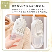 フック付きで、クローゼットのバーや洗面所のタオル掛け、室内物干しなどに吊るすだけ。