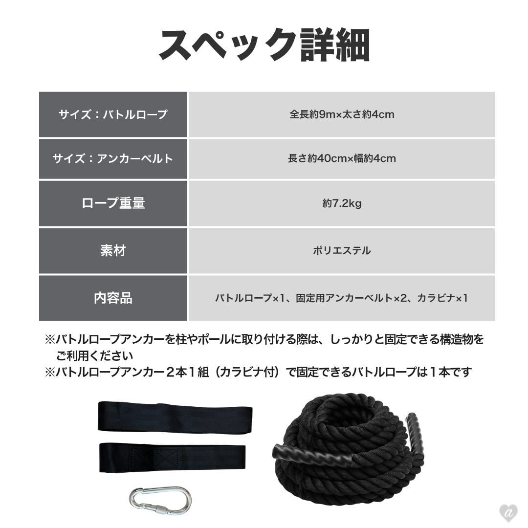 バトルロープ×1、固定用アンカーベルト×2、カラビナ×1