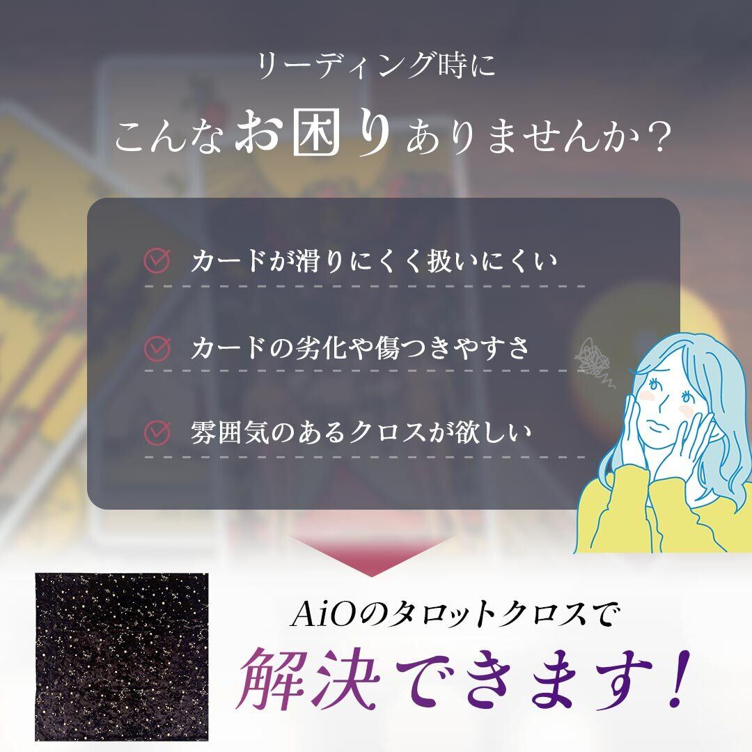 しっとりと高級感のあるベルベット素材が静寂と集中をもたらし、タロット・オラクル・ルノルマンなど幅広いカード占いに対応。プロの占い師からセルフリーダーまで、初心者にも扱いやすい大判サイズです。