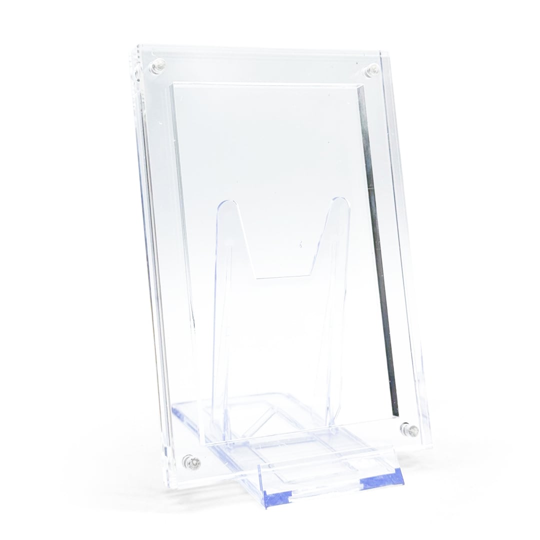 ポケモンカードや遊戯王、スポーツカードなどのPSA鑑定済みカードをワンランク上のスタイルで美しく魅せる、マグネット開閉式のアクリルディスプレイと専用スタンドがセットになった、観賞用に特化したプレミアムディスプレイスタンドです。