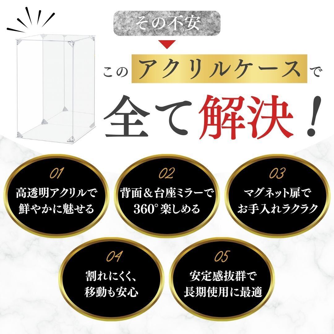 大切なコレクションを美しく、そして安全に守るために設計されたアクリルディスプレイ フィギュアケース。お気に入りのフィギュアや模型、アート作品を一層引き立て、まるでギャラリーのように飾ることができます。従来のケースでは物足りなかった方にこそおすすめしたい、機能性と高級感を兼ね備えたケースです。