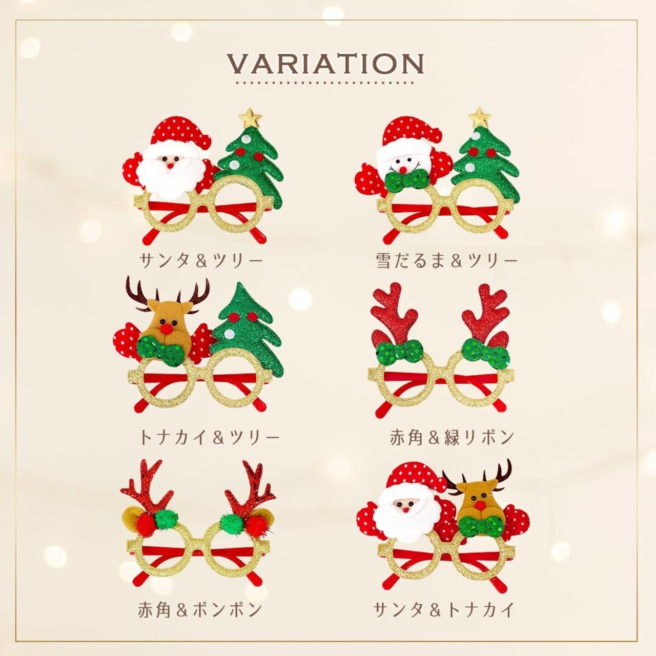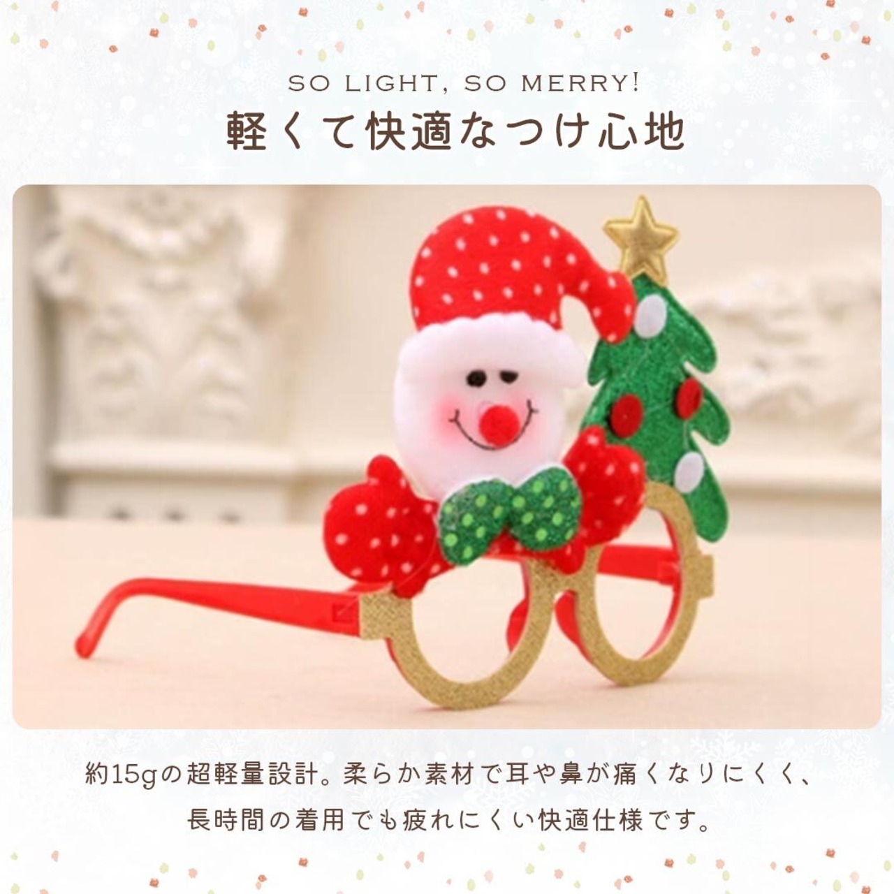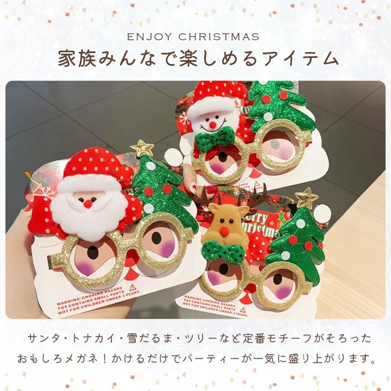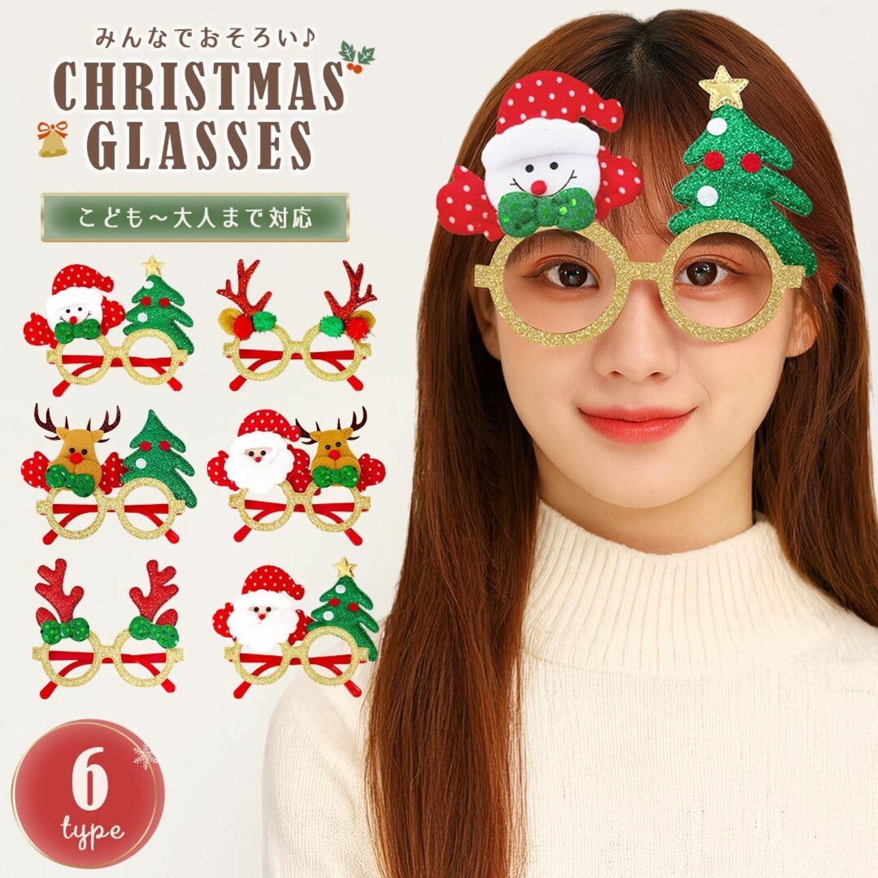 家族みんなで楽しめる!クリスマスパーティーや写真撮影にぴったりのデコレーションメガネが登場。トナカイやサンタ、ツリーなど、定番モチーフが勢ぞろい。お子様から大人まで幅広く使えるサイズで、かけるだけで笑顔が広がります♪