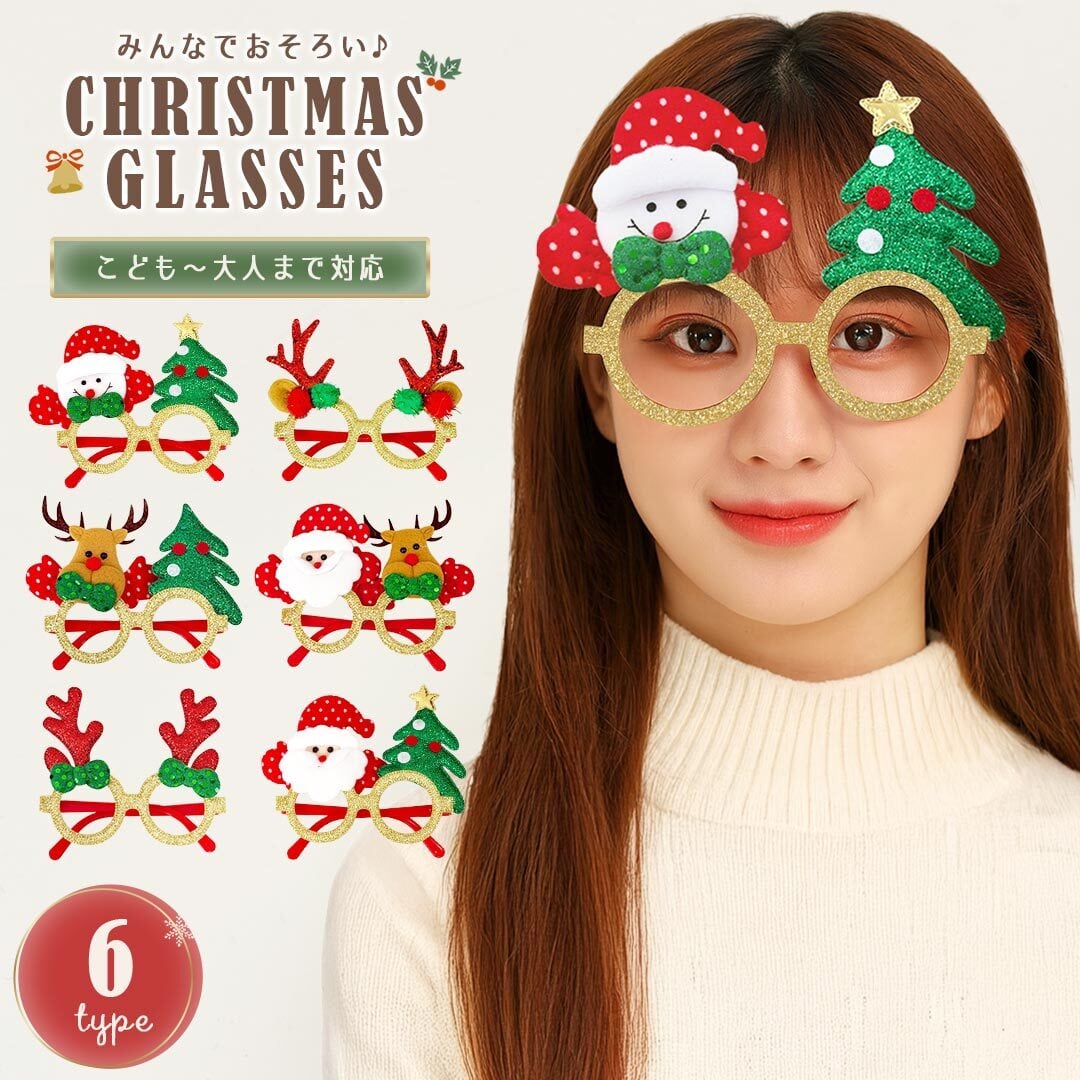 パーティーメガネ クリスマス 装飾メガネ クリスマス眼鏡 全6種 おもしろ眼鏡 サンタ トナカイ 雪だるま サンタクロース スノーマン デコレーションメガネ 面白眼鏡 変装グッズ キッズ 子供 家族 写真映え SNS映え インスタ映え コスプレ 仮装小物 仮装 プチ仮装 おそろい