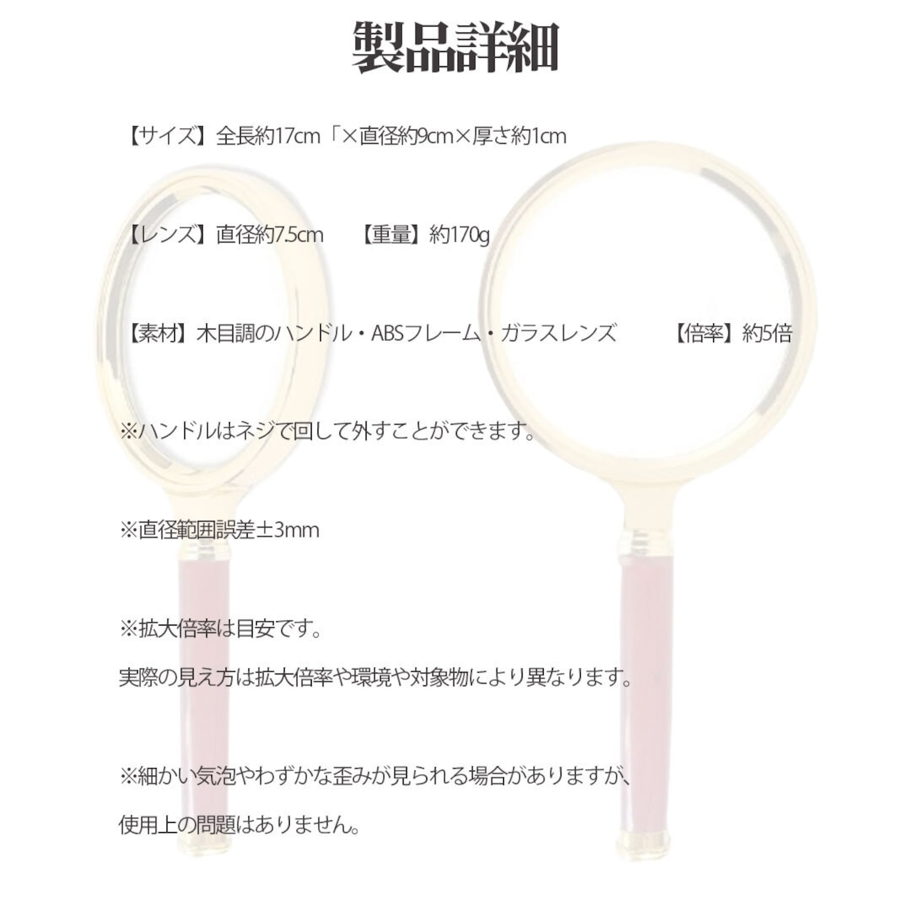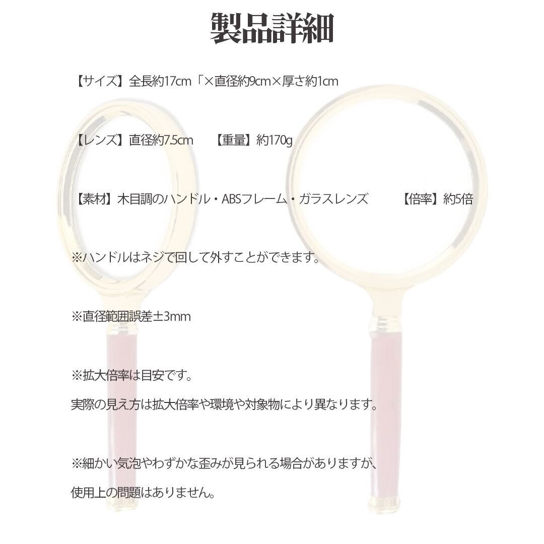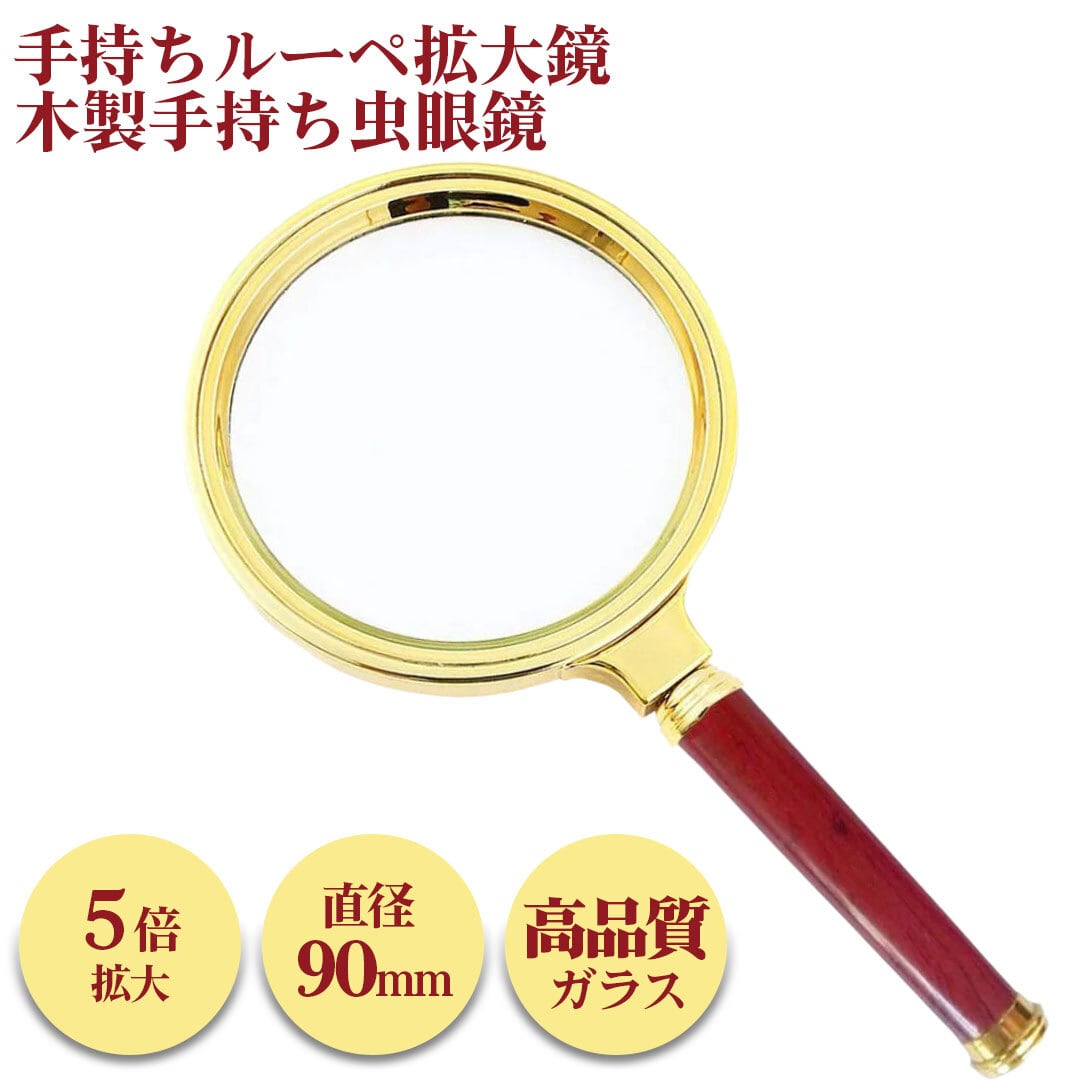 手持ちルーペ 拡大鏡 5倍拡大 直径90mm 木目調手持ち 虫眼鏡 読書 リーディングルーペ ウッド調 書類 作業 虫めがね シンプル スタイリッシュ レトロ おしゃれ コンパクト 持ち運び 便利 携帯 拡大鏡 新聞 雑誌 辞書 読みやすい 手芸 刺繍 ビーズ細工 トゲ抜き 電子部品 はんだ付け プラモデル製作 模型製作 学校 作業員 工房 書斎 北欧