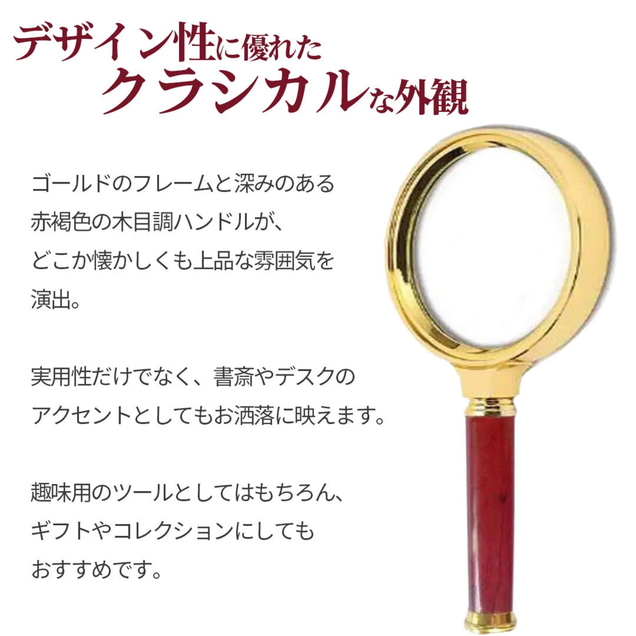 読書や観察に最適なウッド調ハンドル付き拡大鏡です。