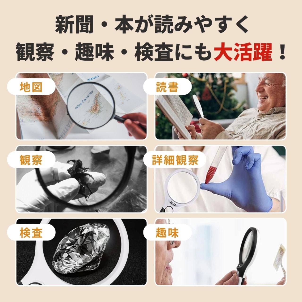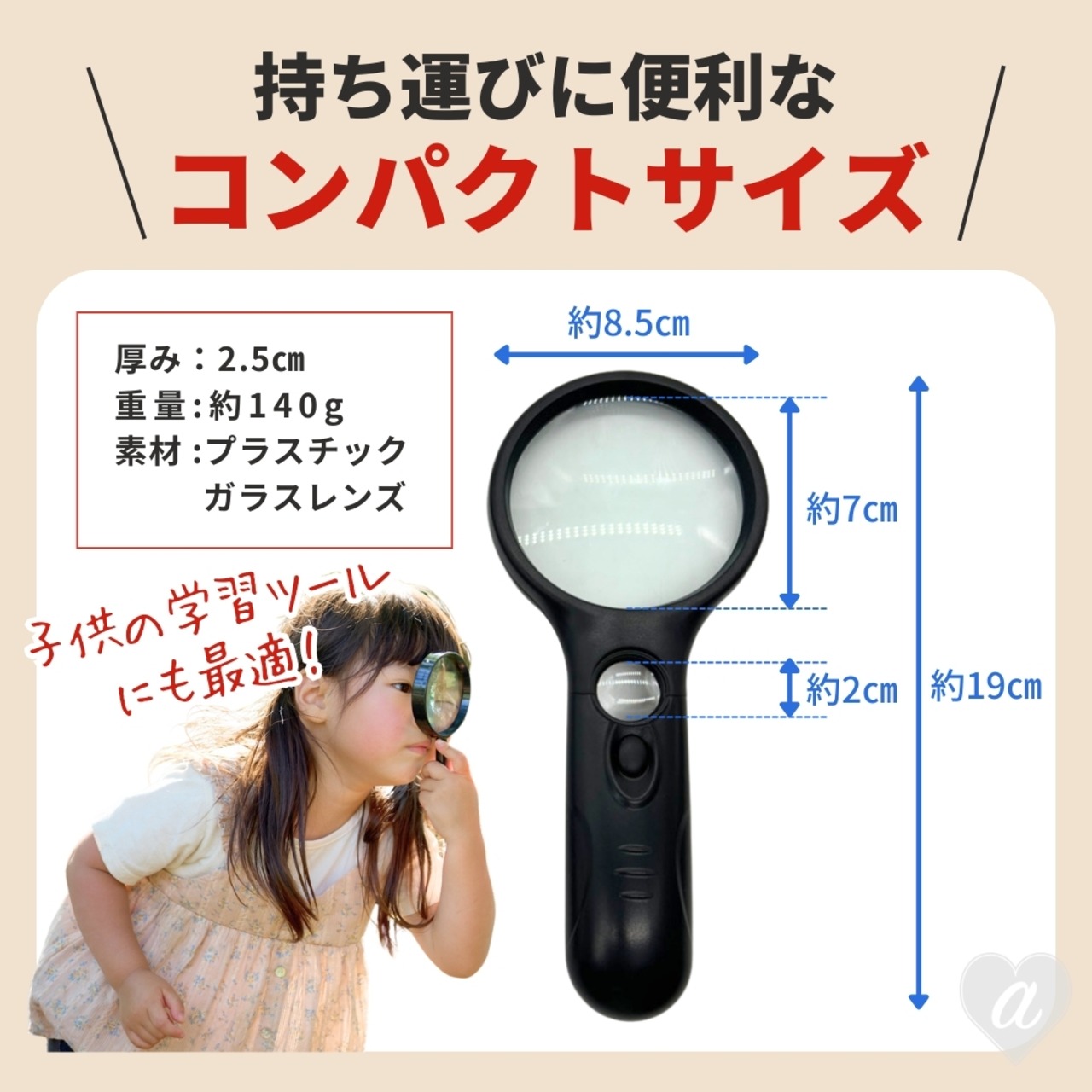持ち運びに便利なコンパクトサイズで、自宅はもちろん外出先でも使用可能。読書や観察、趣味の時間をさらに楽しく、快適にしてくれるアイテムです。