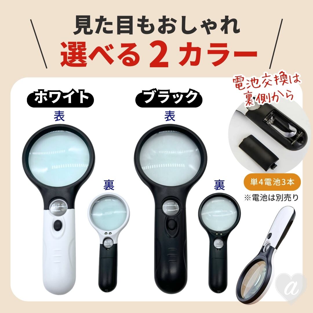 拡大鏡 ルーペ LED付き 虫眼鏡 全2色 手持ちルーペ 約3倍拡大 約45倍拡大 手持ち 読書 リーディングルーペ 書類 作業 虫めがね シンプル スタイリッシュ モダン おしゃれ コンパクト 持ち運び 便利 携帯 新聞 雑誌 辞書 読みやすい 手芸 刺繍 ビーズ細工 トゲ抜き