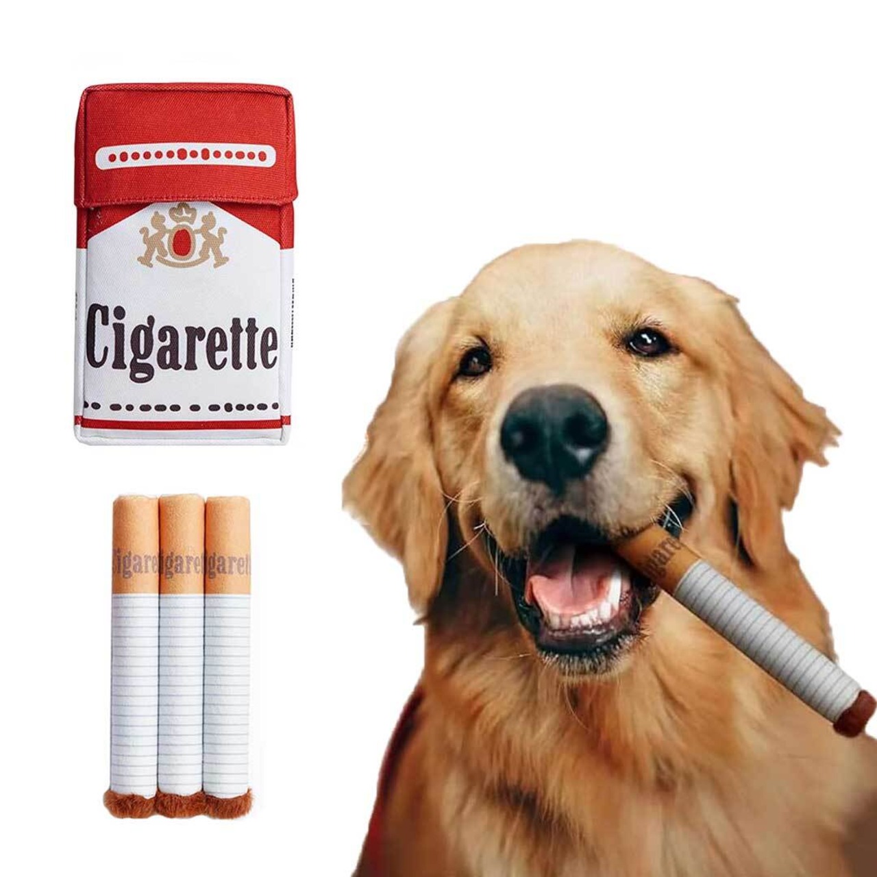 本物そっくりの「タバコ風パッケージ」に、煙草型のスティックが3本入ったユニークなおもちゃセットです。愛犬の遊び心をくすぐるデザインで、SNS映えもバッチリ!