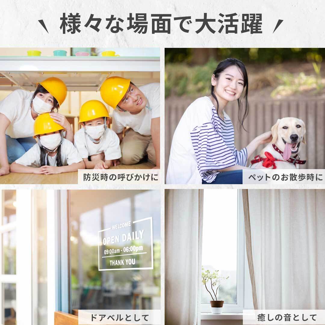 大きめの吊り下げリング付きでリュックやベルト、テントなどさまざまな場所に簡単に取り付け可能。登山やキャンプ、ハイキングなどのアウトドアシーンで、熊よけとしてはもちろん、心地よい音色で自然の中に癒しの空間を演出します。