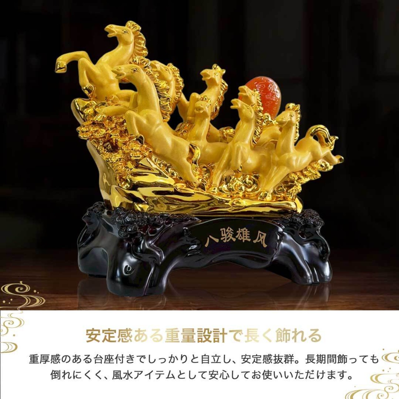 風水 置物 八駿馬で事業成功 出世運を加速 縁起物 午年 馬 黄金 干支 風水アイテム 財運 金運 健康 仕事 家庭 華やか 商売繁盛 幸運 開運 富 スピリチュアル ギフト インテリア パワー 大盛況 超縁起物 浄化 最強 開店祝い 贈り物 お店 店舗 プレゼント 経営者 玄関 ゴールド 金色 | AiO ONLINE STORE