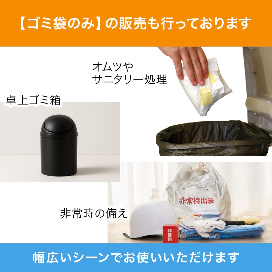 また、当店では【ゴミ袋のみ】の販売も行っております。ペット用だけでなく、卓上ゴミ箱・車載用・オムツやサニタリー処理・非常時の備えなど、幅広いシーンでお使いいただけます。