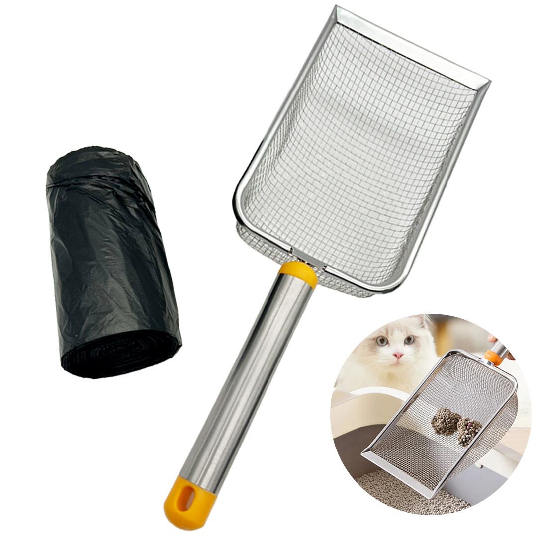 ペット用品 猫砂シャベル ステンレス ゴミ袋1ロール付き メッシュ シンプル 小粒用 お手入れ簡単 軽量 ペット 世話 トイレ 掃除 清掃 ねこ 猫 猫トイレ 猫砂 スコップ トイレ掃除 砂取り トイレスコップ 便利グッズ お手入れ 清潔 衛生 砂 ゴミ袋 猫トイレ用品 お手入れ用品 猫用品