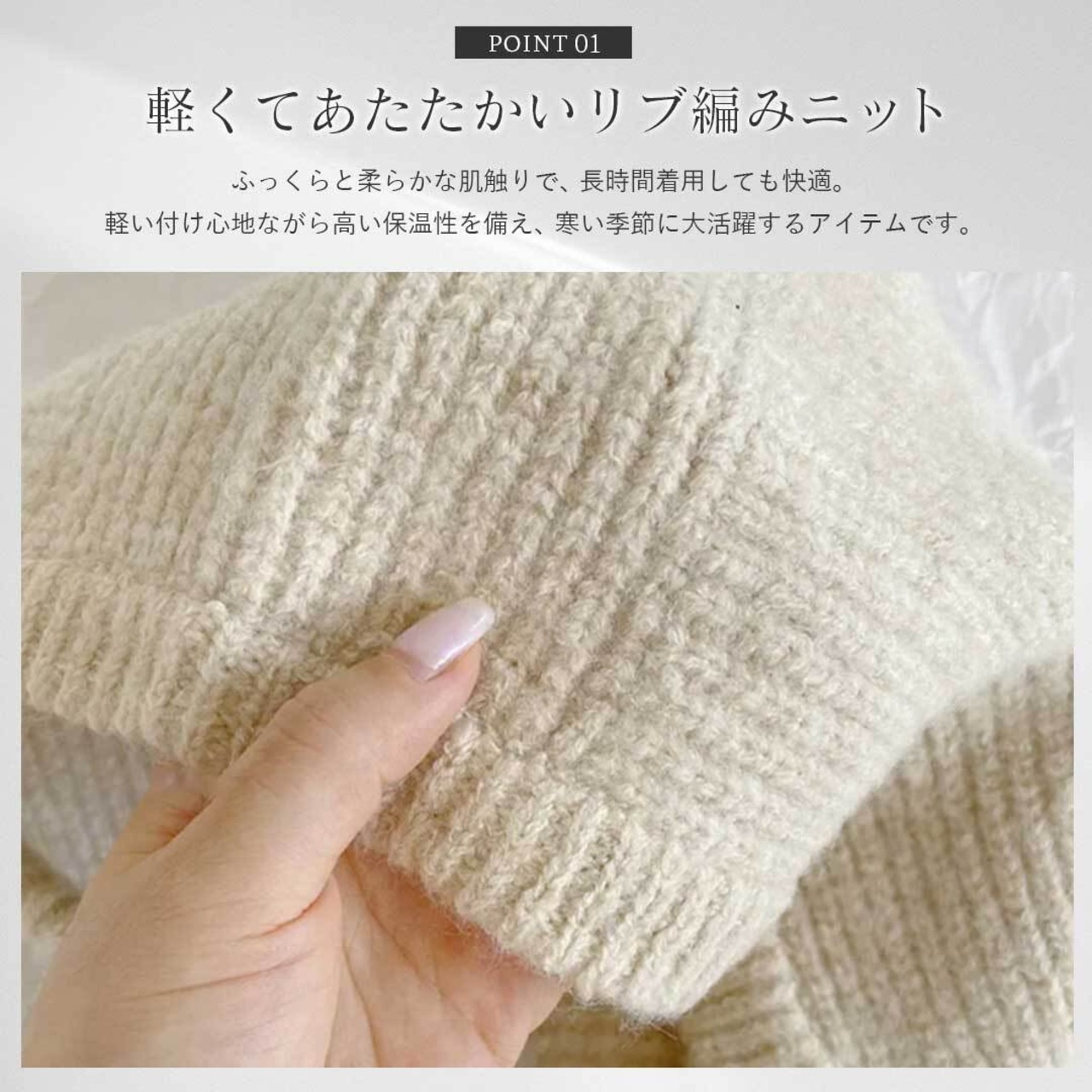 素材:アクリル、ポリエステル混紡ニット