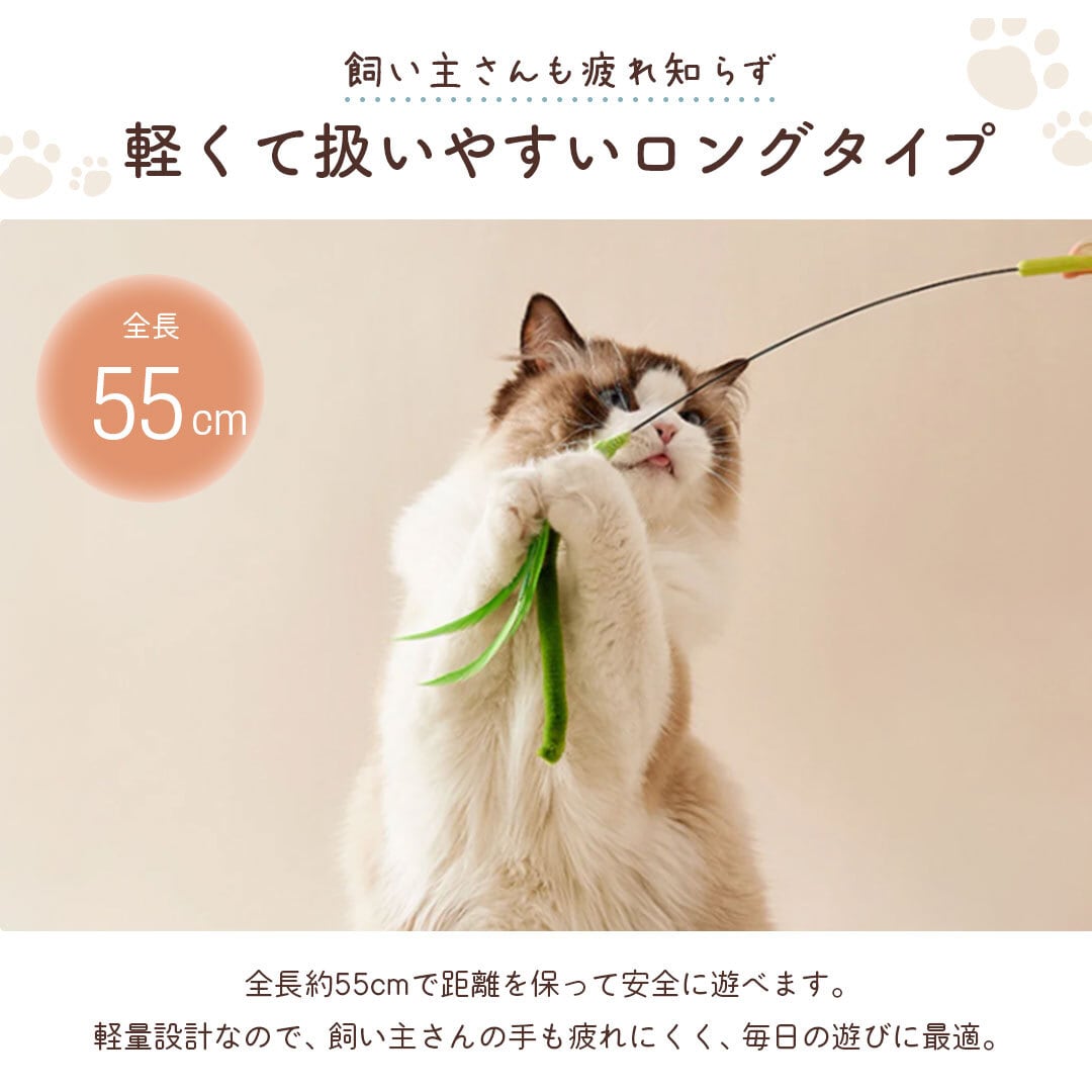 お留守番が多い猫ちゃんや、運動不足が気になるシニア猫にもおすすめ。毎日のコミュニケーション時間がぐっと楽しくなる、定番の猫じゃらしです。
