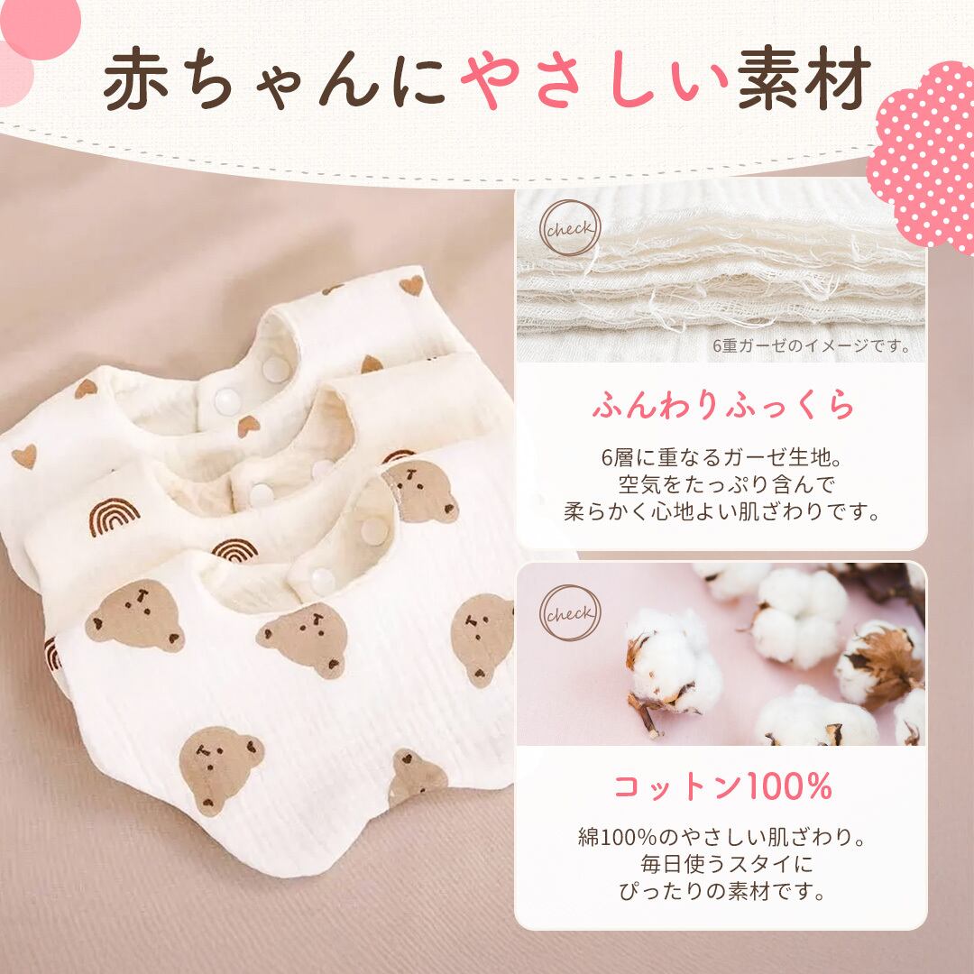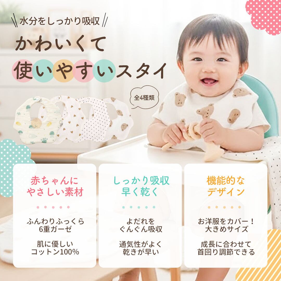 【普通郵便発送】 ベビー用品 ふんわり6層ガーゼスタイ 選べる4デザイン コットン ガーゼ 2段階調節 やわらか素材 よだれかけ ベビー 男の子 女の子 お食事エプロン かわいい やわらか 通気性 ビブ スタイ 前かけ 綿 新生児 乳児 幼児 乳幼児 あかちゃん 赤ちゃん | AiO ONLINE STORE