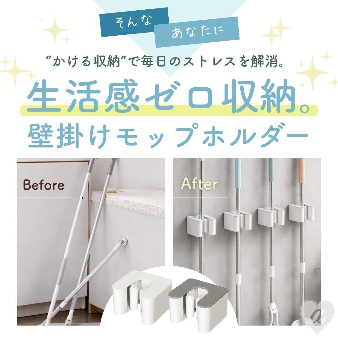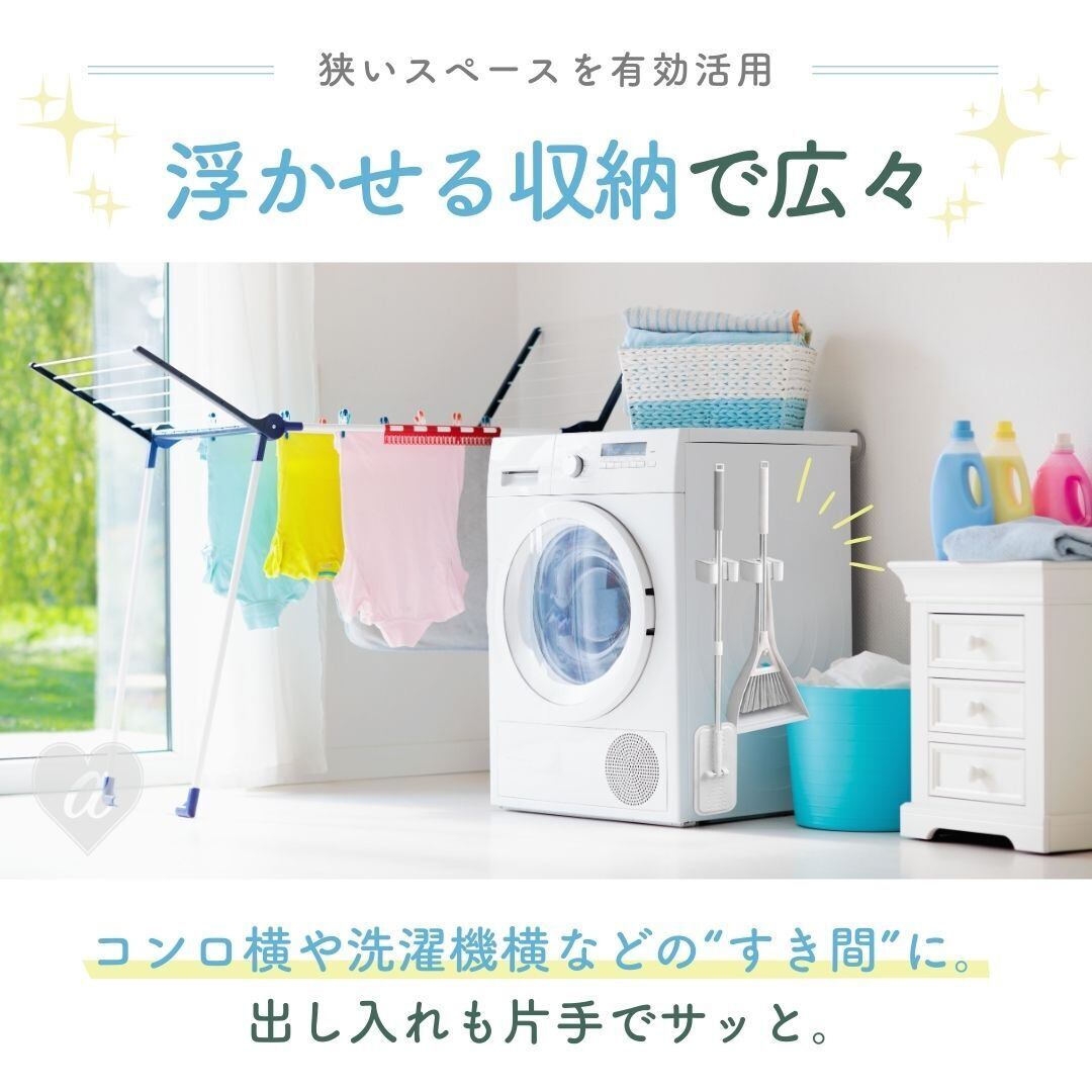 掃除道具がつい出しっぱなしになってしまう空間を、すっきり整えたい方におすすめの壁掛けモップホルダーです。